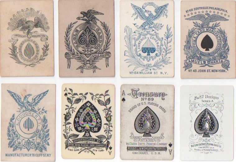 5: Dougherty, c.1848; 6: Union PCCo., c.1880; 7: United States Printing Co., c.1894; 8: USPCC, c.1899.