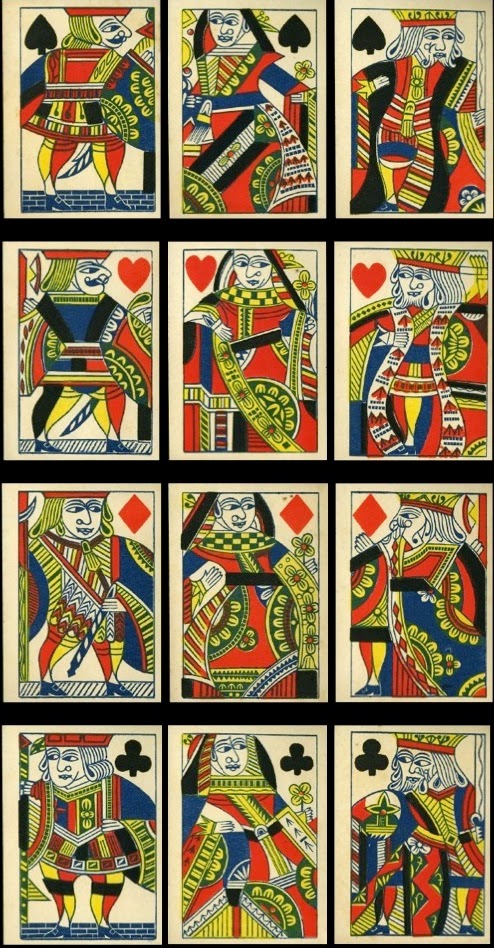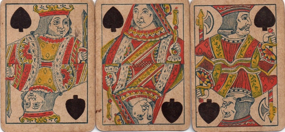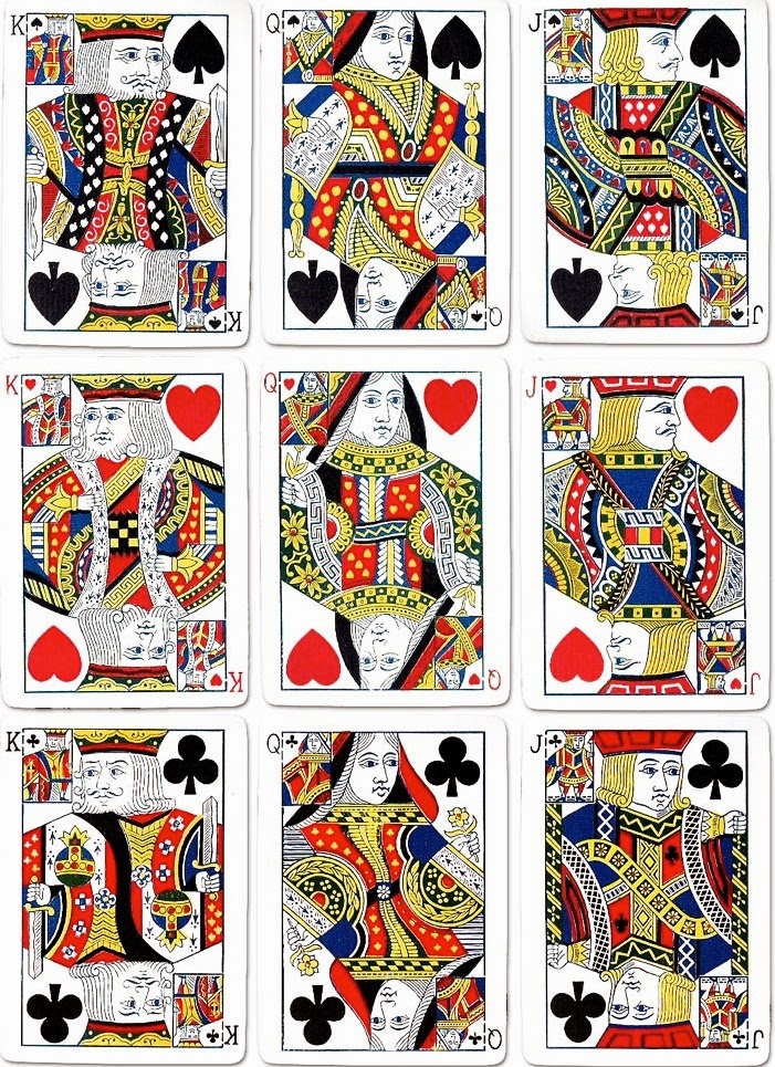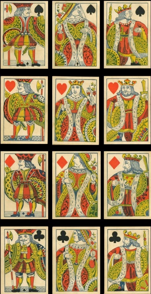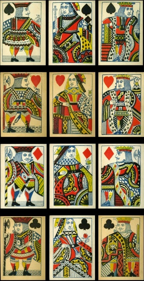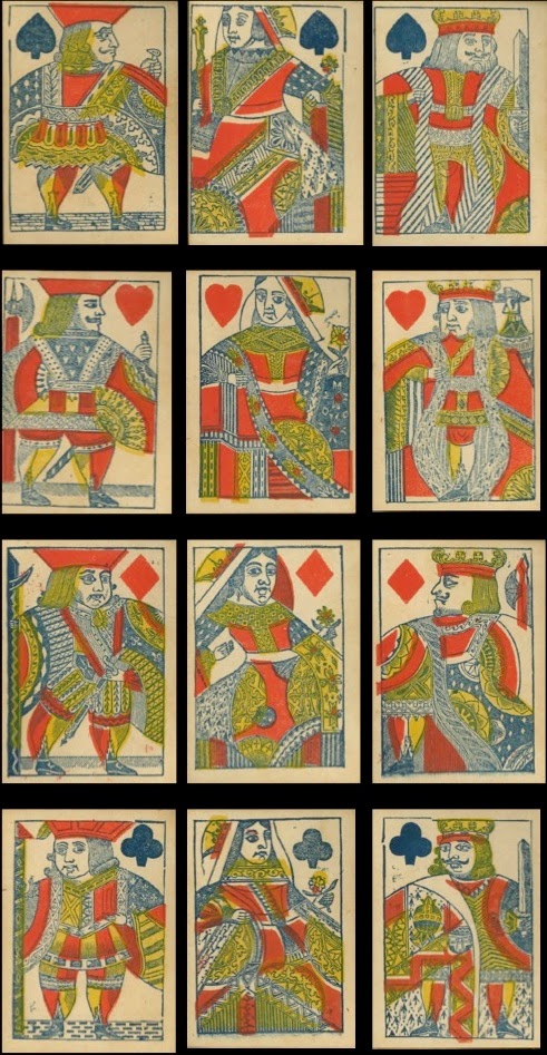 By this time the courts had had their somewhat strange wood-block faces tidied up to look more like other contemporary cards.