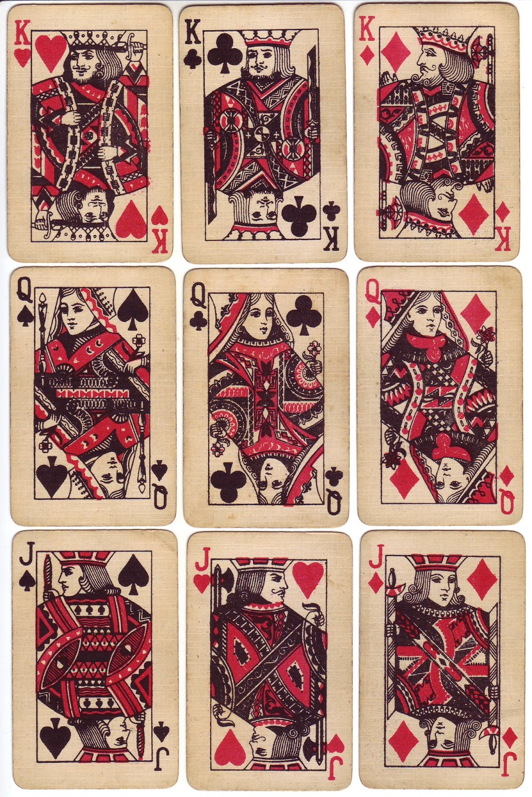 Above: 4-colour courts from a Valentine canasta pack, c.1975