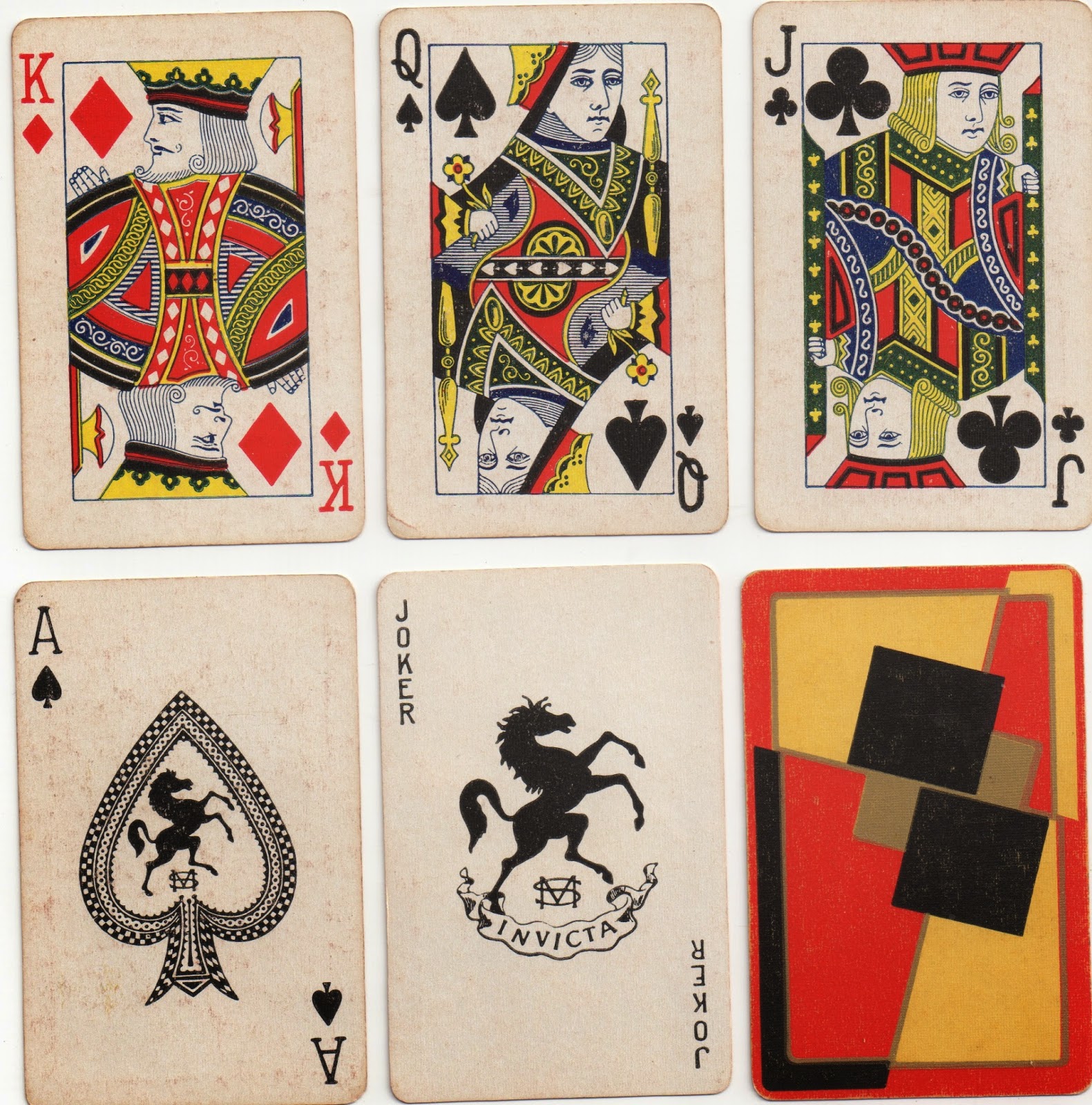 Above: Top two rows: Reed, 1982 with Piatnik courts; bottom row: Hardie Spicer, 1987