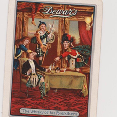 An interesting aspect of back designs is the length of time some of them were used, with, in some cases, slight changes in the design brought about by redrawing. For example, the Goodall Shakespeare commemorative pack was first issued in 1864. Since it proved popular, it was republished a number of times until c.1917, even with square corners and no indices. There are variations in the backs from different periods, but the easiest way to date them is to use the court cards and ASs: the last edition (c.1917) has Limd on the AS and a London postal district number on the box (introduced in 1917), so they are good indicators of date. There are also those cases where the contract for a particular product goes from one maker to another. For instance, Johnny Walker cards were made by Goodall, then De La Rue after the take-over, but also by Waddington. I have a very odd mixed pack of Goodall/Waddington production. The backs are very similar, but are, in fact, from different plates. The advertising aces are also different. I illustrate some of the cards below.