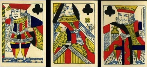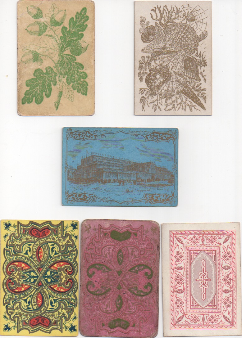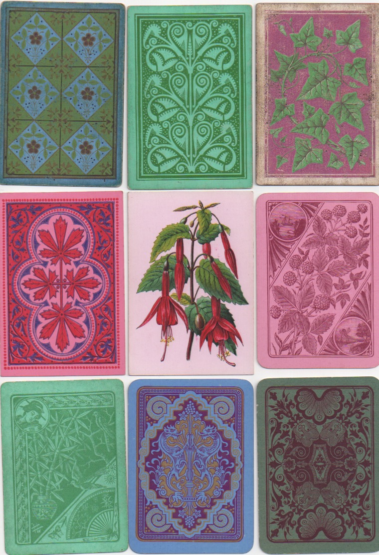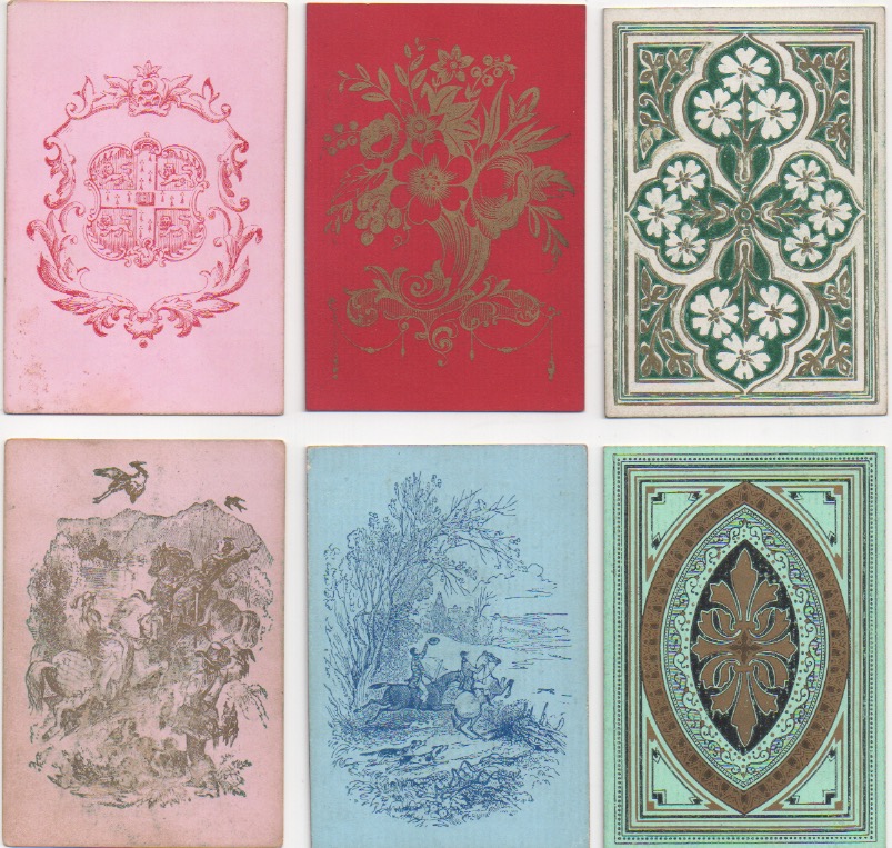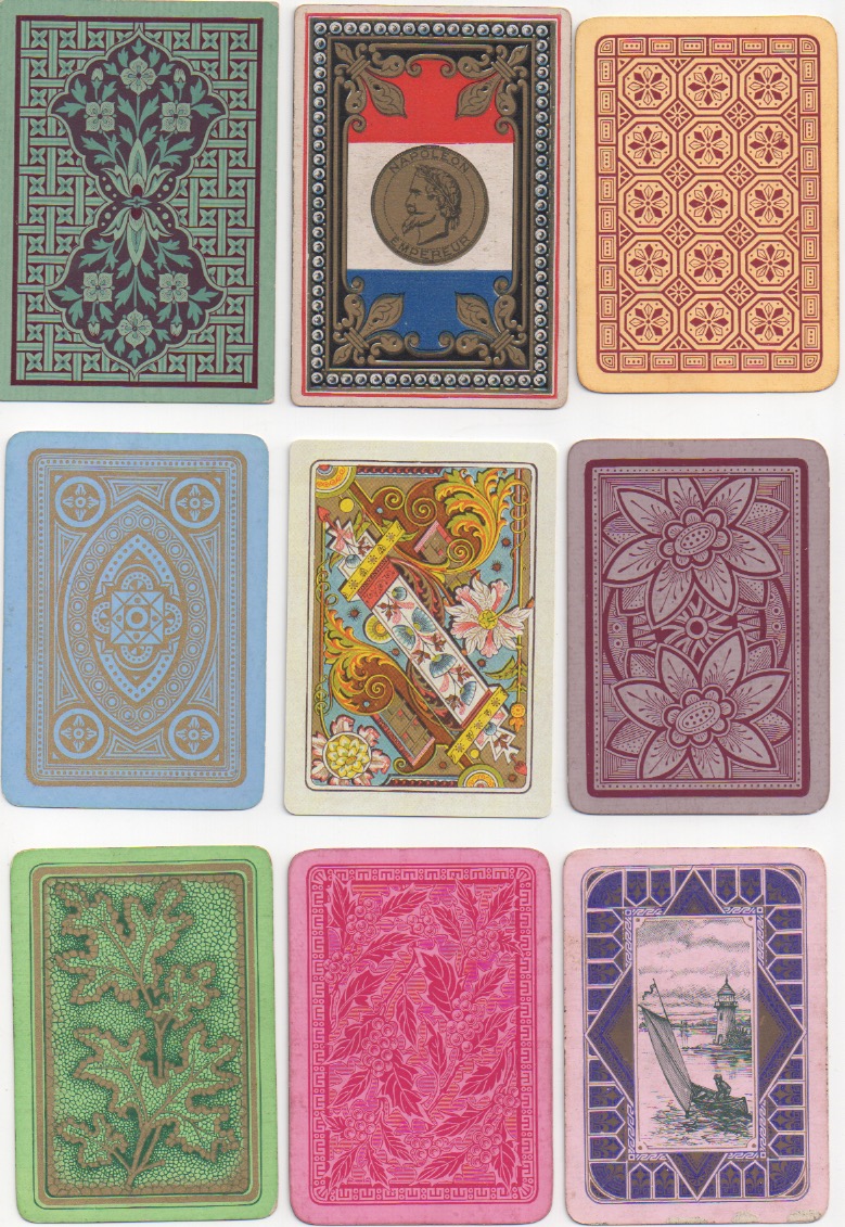 Many people think that collecting playing cards means being interested in the backs. I'm always having to put people right on that score in my own case. Playing cards were invented and became popular because of what is on the front of whatever variety of card you choose. Whoever decided it would be a good idea to prettify the backs was onto a winner. The first reason to decorate the backs of cards seems to have been a practical one: it prevents any transparency there might be in a strong light, if the backs are plain white (or even other colours). But the idea that card-players might like artistically created back designs has no practical significance whatsoever, beyond the transparency issue. If reports in Victorian England are anything to go by, the hardened, serious card-players would no doubt have pooh-poohed such innovations along with all the other 19th century advances that we take for granted today: double-ending, round corners, redrawn courts and even corner indices. Like in most things (good or bad), the pooh-poohers have been swept away in the mists of time.