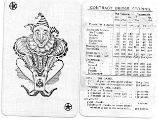 The fronts of these cards show which maker made which; the score for no trumps (35) on the bridge score card from Universal dates it as 1928-32.
