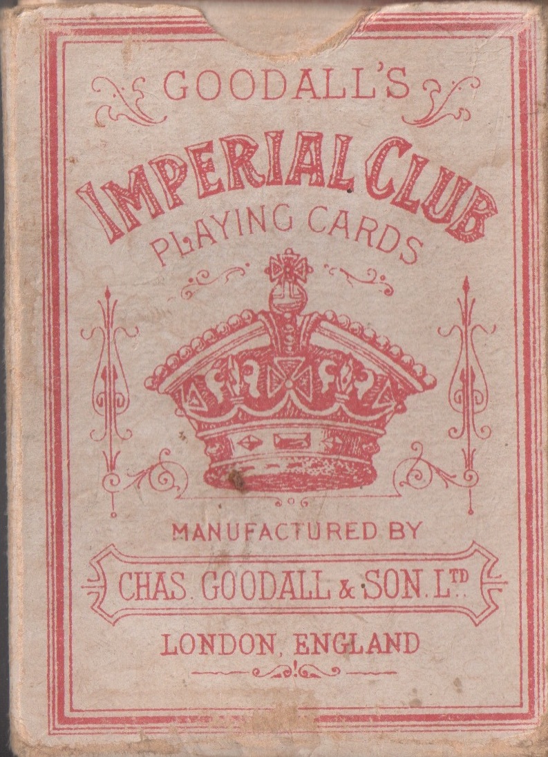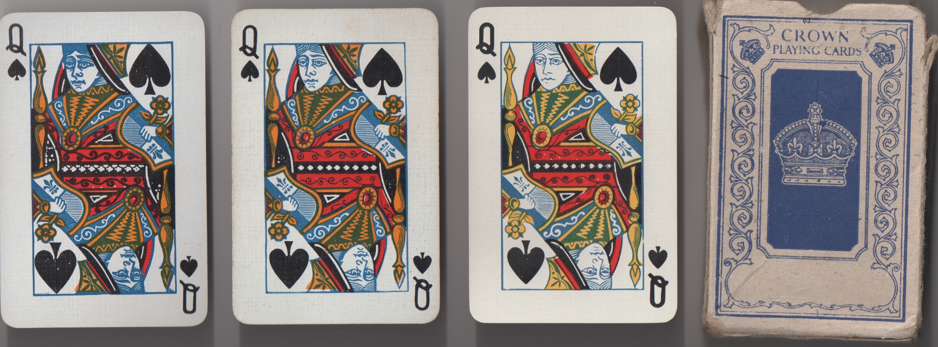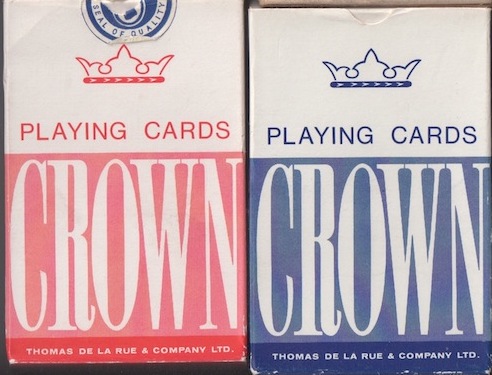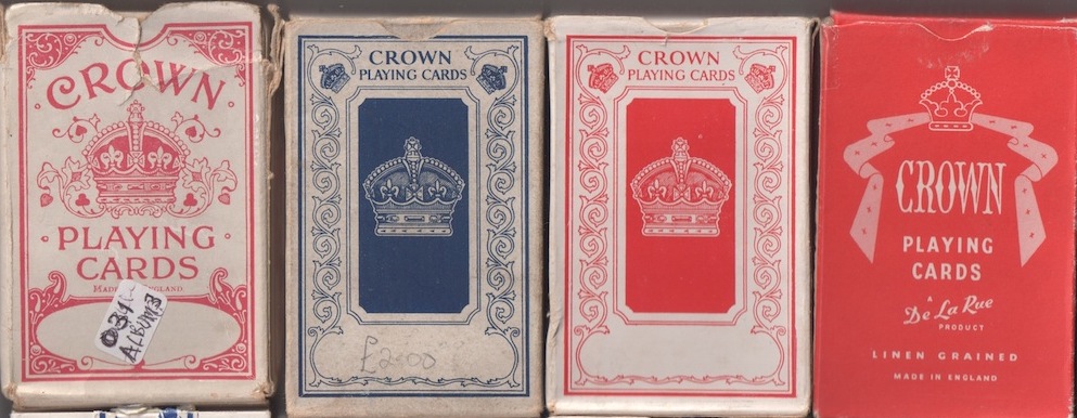 Crown brand packs were introduced in c.1930 as bridge cards. The original box design is similar to that of Goodall's wide-size Imperial Club, so it may have been intended as the bridge version.