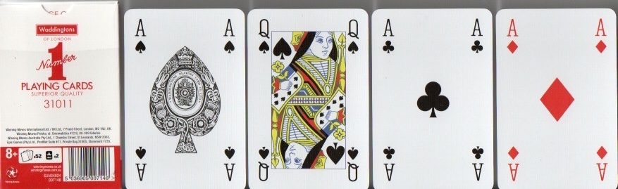 The bottom row illustrates two Waddington packs. On the right is an example of the cards available under the Wills cigarette scheme of 1933-34. Since three to four million packs were produced for this scheme, it may be that left-over stock was put on the open market. The ASs were always anonymous.