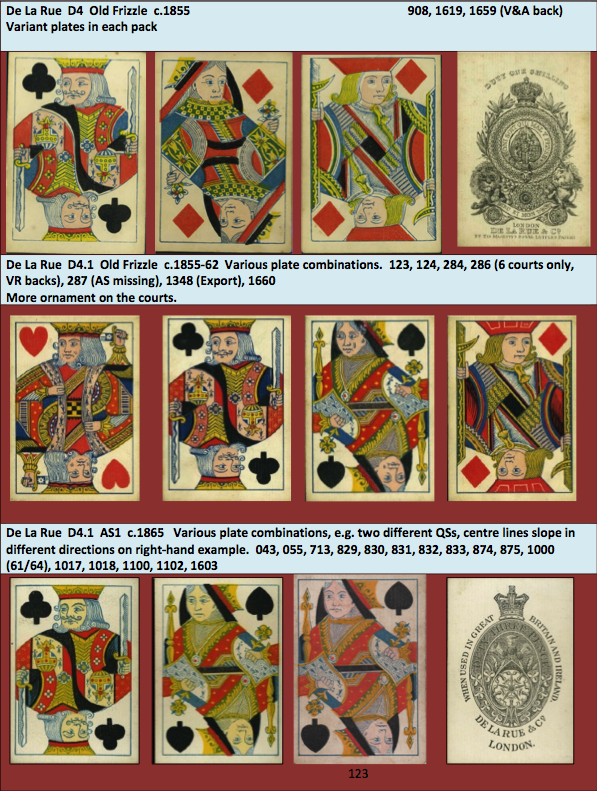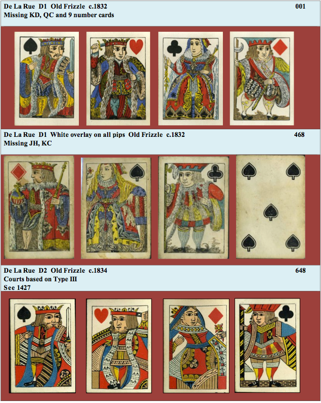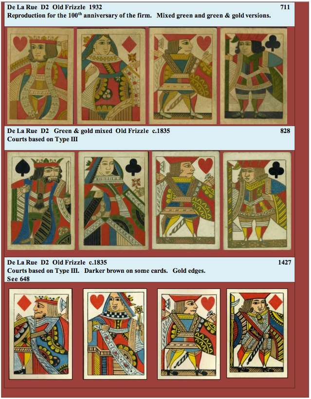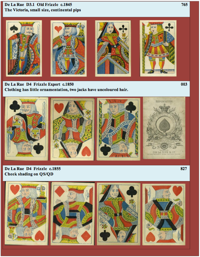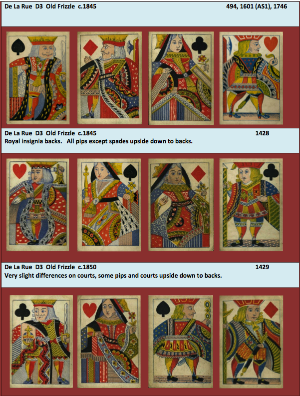 On the basis of a number of packs celebrating the wedding of Queen Victoria and Prince Albert it is possible to see that they were popular and were produced over several years in the Old Frizzle period. They were presumably discontinued after Albert's death in 1861. All the following courts are found with this back design: D2, D3, D3.1 and D4.