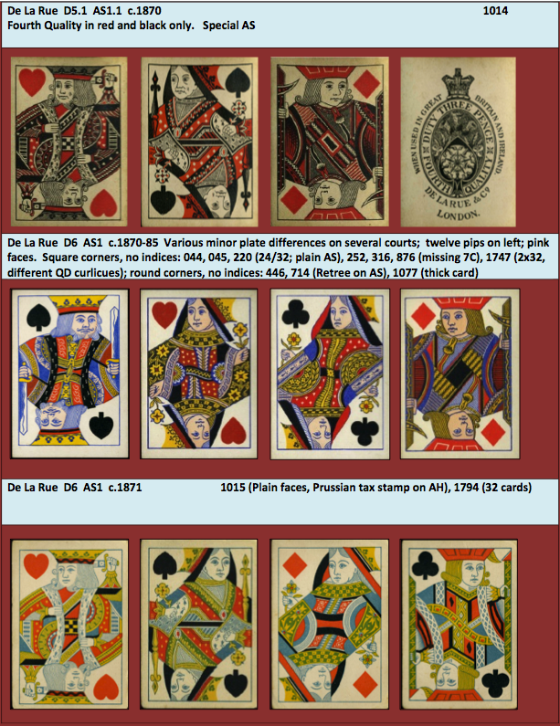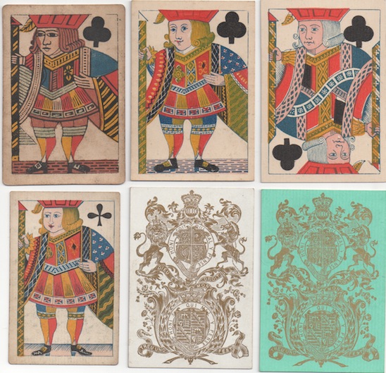 Above: D6: [1661] anonymous AS, plain faces, green backs; [1501] with coloured faces; c.1880