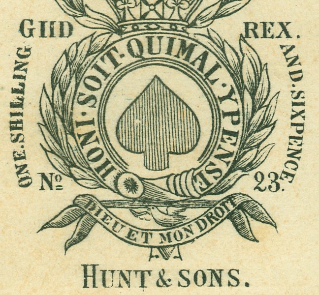 At the other end of the scale there are definite attempts to defraud, usually by avoiding the taxes levied on cards. This was very much the case when the tax on cards was very high, such as during the Napoleonic Wars. If a pack could be bought for a penny or tuppence, that was a great deal better than paying 2/6 in tax plus the cost of the pack. The trade in illegal second-hand packs or illegally imported ones must have constituted a considerable loss of revenue for the government of the day. Blanchard and Hunt seem to have been particular targets, though I suspect that what appear to be Hart packs often are not. Some of the latter actually have American-style courts. I illustrate examples with different types of court card, but fake ASs.