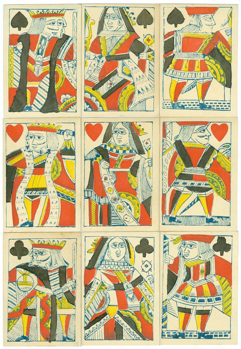 And the courts, AS and joker below were made in China for the American casino market in 2003 with an idiosyncratic reworking of the design.