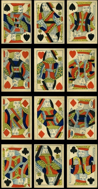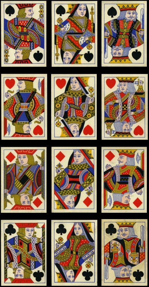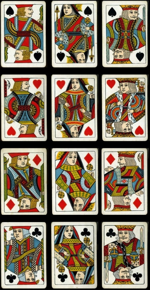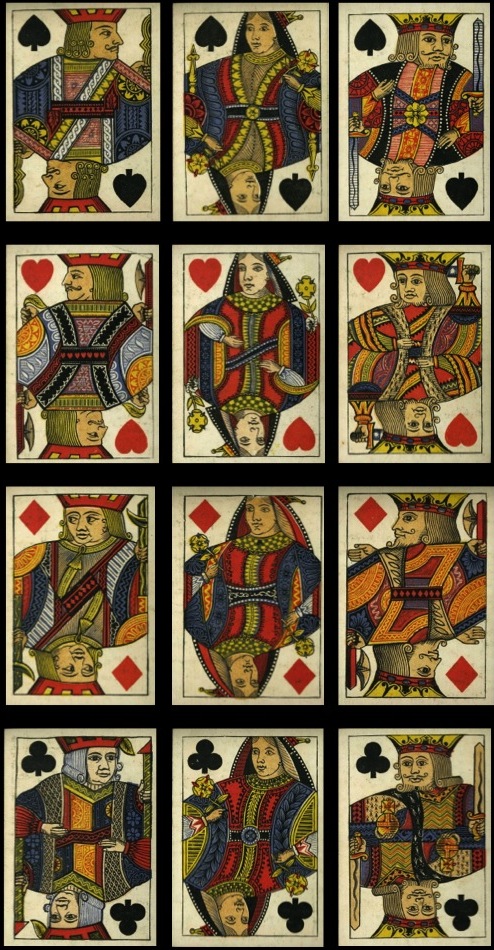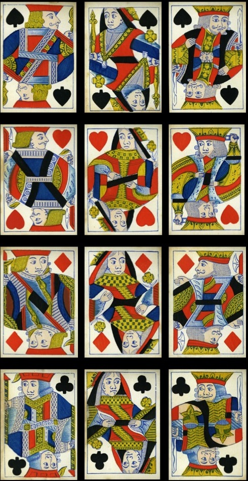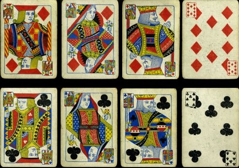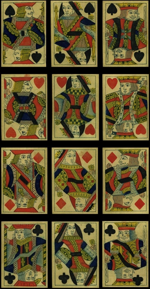 The emphasis throughout my collecting has been on the design of the courts cards, and it should be pointed out that there have been some functional changes to cards, which have affected the traditional designs, especially in the 19th century.