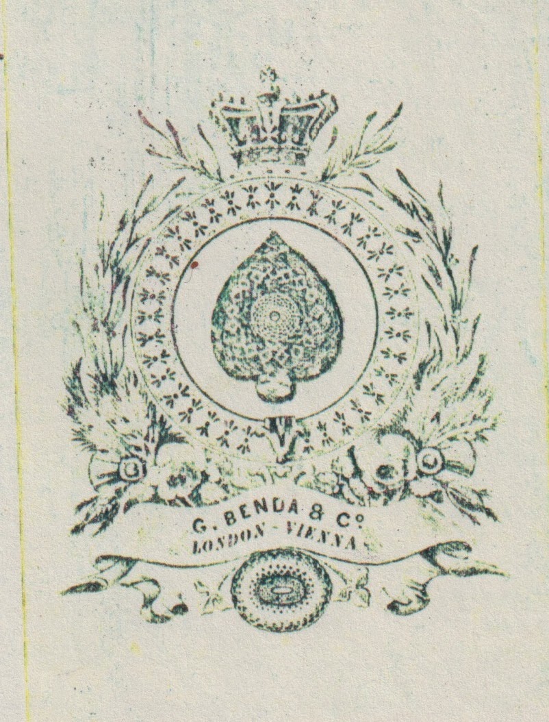 A. Benda was also involved in the Eagle Playing Card Co. (no connection with the American firm) established in 1887, after he seems to have parted company with Van Genechten. The cards were made in Bohemia; the only pack I've ever seen is on the wopc website, from which the illustration comes.