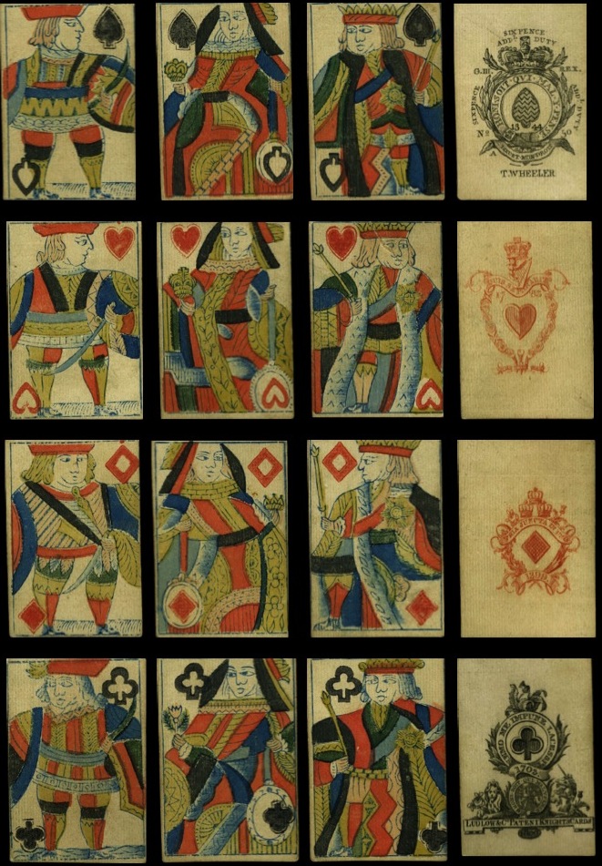 William Wheeler was assigned a Garter AS in 1821 and is listed in directories at 11 King St., Snow Hill from 1822-28. A pack of his cards has recently been illustrated by Neil Darbyshire in the EPCS Newsletter.