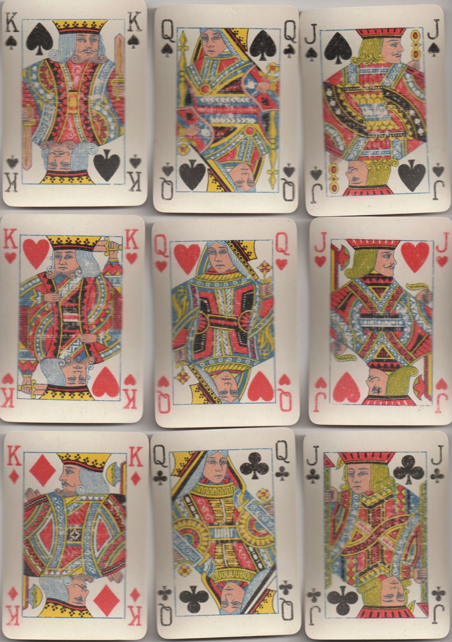 Now this example brings me to cases where identification of a maker becomes very tricky, if not impossible, even with modern packs. Below is yet another example of the Piatnik turned courts in a large-index pack, a souvenir of Seville.