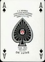 This design is also found with an F X Schmid AS (but a Piatnik joker) and an anonymous AS, which looks like a Chinese one used in hundreds of their packs, but bearing the legend Made in Germany.