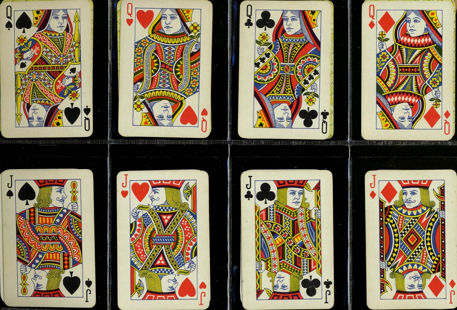 They made Five Hundred packs in the early part of the 20th century and used the above courts in the earlier editions. Then the design was changed with both 4-colour and 2-colour versions. They produced patience cards, too.