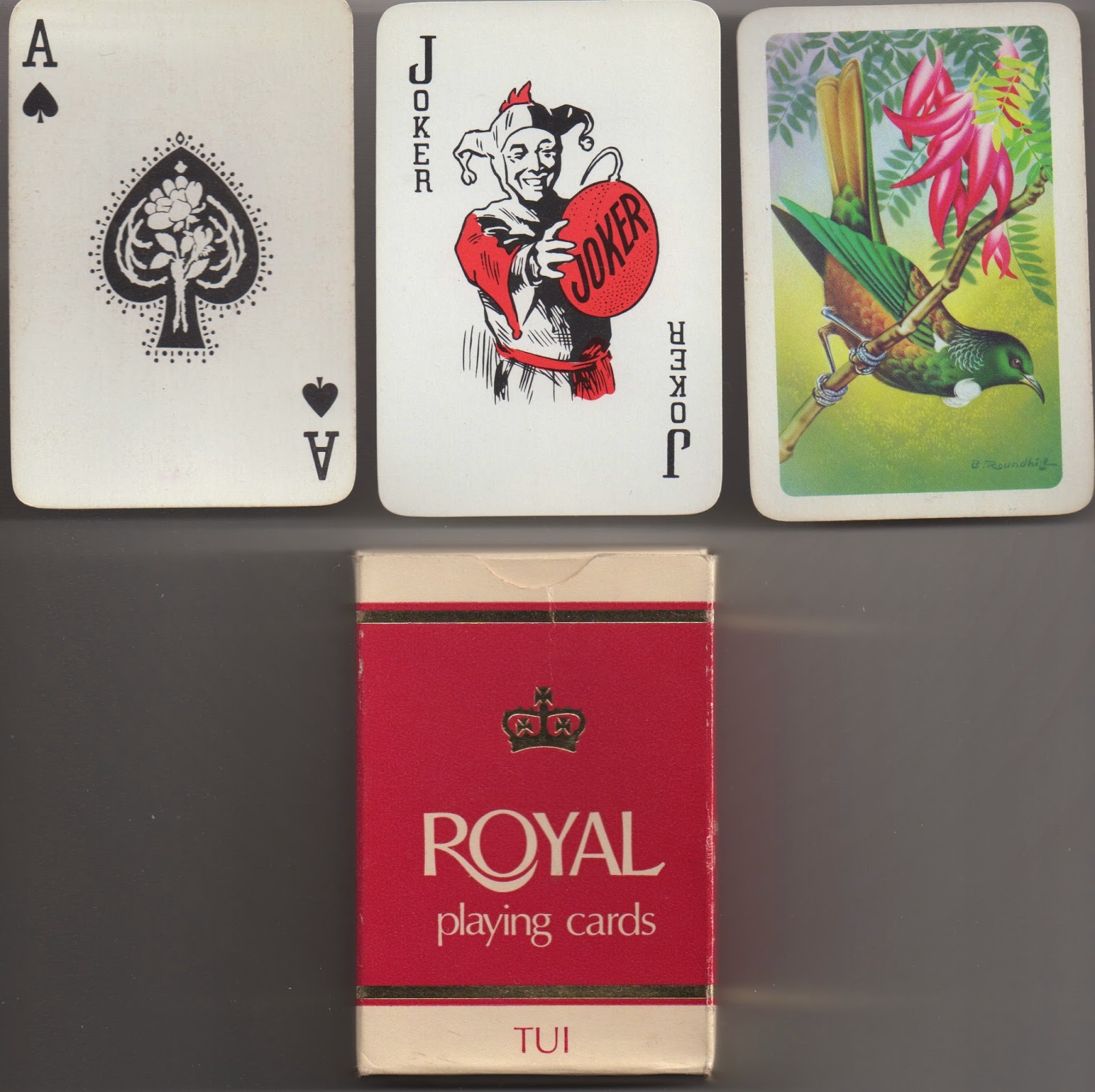 The other pack made outside NZ for their market is a pack with 52 photo views of New Zealand placed centrally on top of standard cards. The courts are copies of the NYCCC ones we saw used as a model in Australia and they were printed in Bavaria for Muir & Moodie.