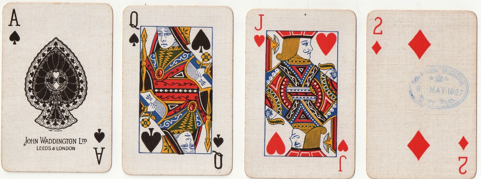 Waddington cards were imported into New Zealand in the 1920s. These were stamped on entry, as in the example below.