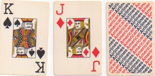 45 USPCC for American Airlines, small cards in centre of each card, courts as used in the early 20th century Fauntleroy packs, large indices, box, c.1985, VG+ £5