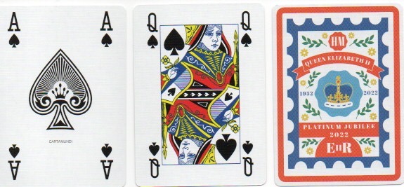 60 Carta Mundi wide for Queen Elizabeth's Platinum Jubilee, 2022, box, mint £3 (I haven't seen any other celebratory pack for this event.)