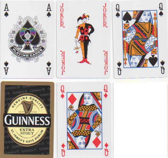 22 Carta Mundi or China for Guinness, oversize cards (9.7 x 6.7 cm) with standard wide courts. The AS and joker are designs used in China, but 'Carta Mundi' is printed in the foliage under the banderole, so it's difficult to be certain where they were made. Box, c.2015, mint £3
