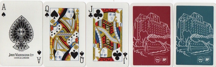 24 Waddington double box for Shell-BP, Goodall courts, box, c.1960, backs show the Shell-Mex building on the Thames Embankment, London, unused £5