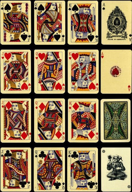 The playing card manufacturers of Germany from 1900 until 1939 provide a complicated set of relationships that deserve closer investigation. Here are some of the standard English designs to be found.