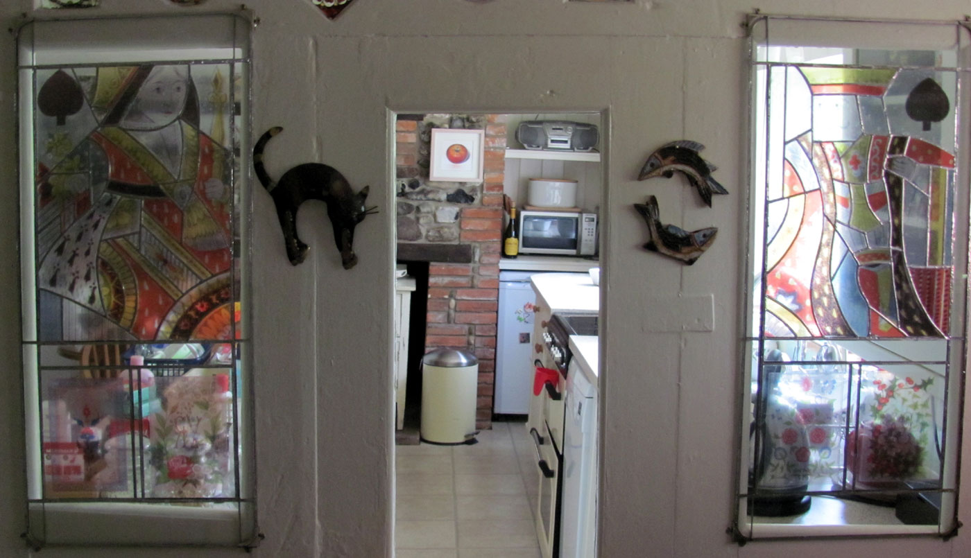 My wife and I live in a quirky house, parts of which were a pub. Although it ceased to be an alehouse in 1914 (the outbreak of World War I plus the loss of the river-based wherry trade to the railways), the old drinking room is our kitchen with hatches to serve beer through. Originally these would have been hinged and had, according to those who knew it before we did, pink glass panels in them. These were allegedly broken by a missile hurled by one of the previous owners, so when we bought the property they were just openings in the wooden screen between the hallway and the kitchen. For many years we wondered whether we could put at least something in them, preferably glass again.