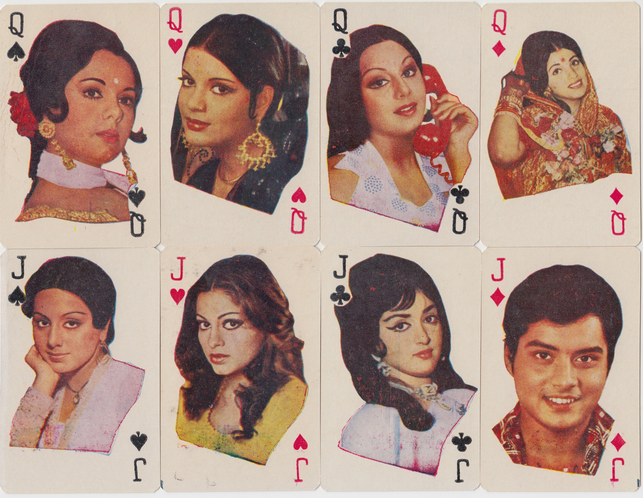 Shown here is a pack of playing cards named 'Eves Playing Cards' which depicts photos of Bollywood film stars on all the cards.
