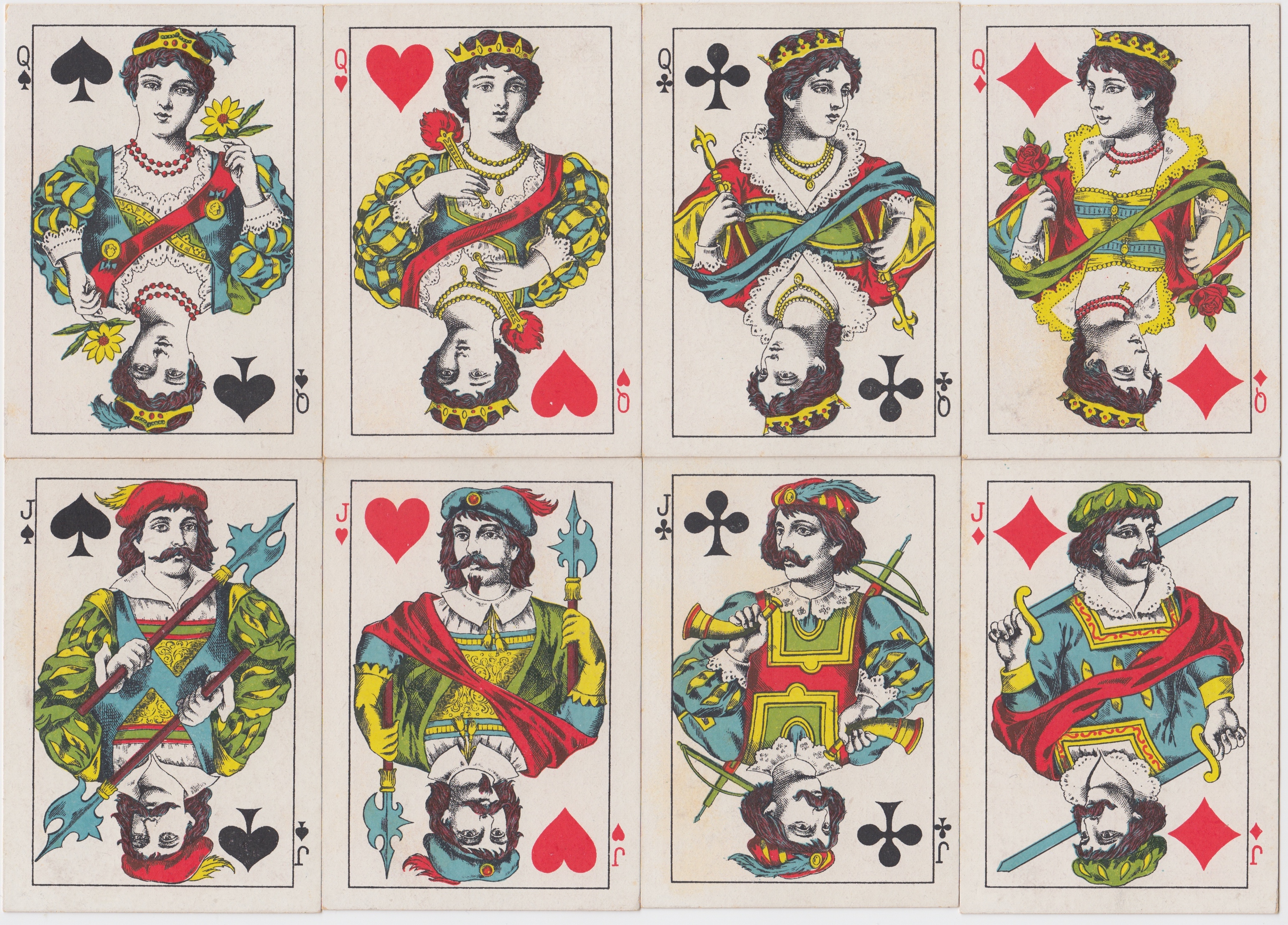 Two souvenir packs with different court cards made by Glénisson for the Isle of Man, c.1880.
