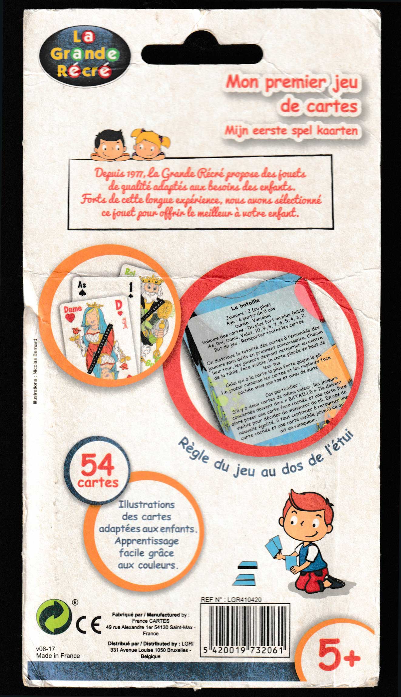 Standard French designs adapted for children. Made by France Cartes for La Grande Récré, c.2016.