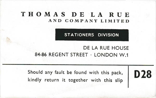 After De la Rue factories were bombed in 1940 their cards were printed by Waddingtons. In 1962 Waddi...