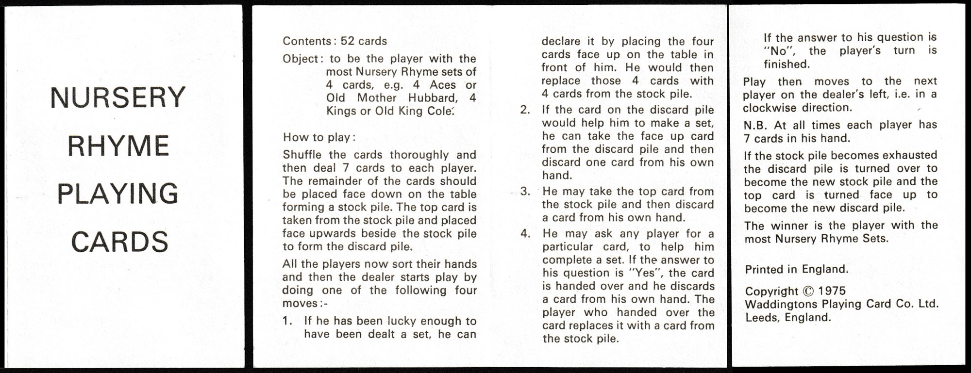 Nursery rhyme playing cards by Waddingtons, Leeds, UK, 1975.