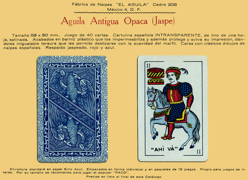 Naipes Aguila Antigua Opaca, La Cubana, S.A. (Fabrica de Naipes El Aguila), Mexico, c.1960.