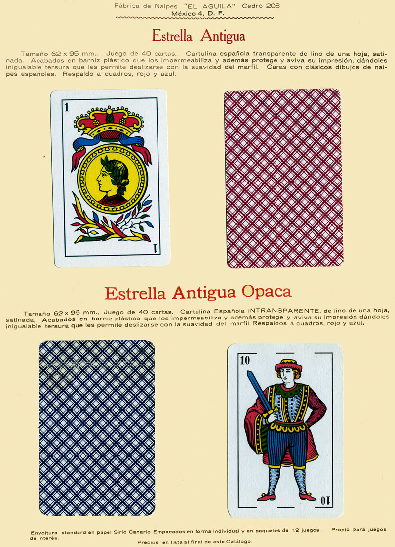 Naipes Estrella Antigua, La Cubana, S.A. (Fabrica de Naipes El Aguila), Mexico, c.1960.
