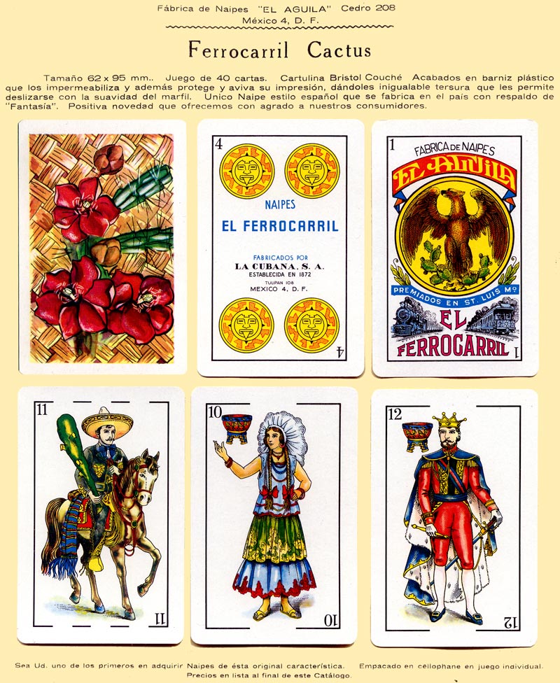 Above: Naipe El Ferrocarril by La Cubana S.A., Mexico, c.2000. 40 cards in box. Reverse: cactus flowers.