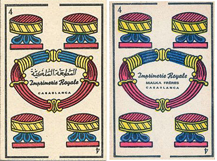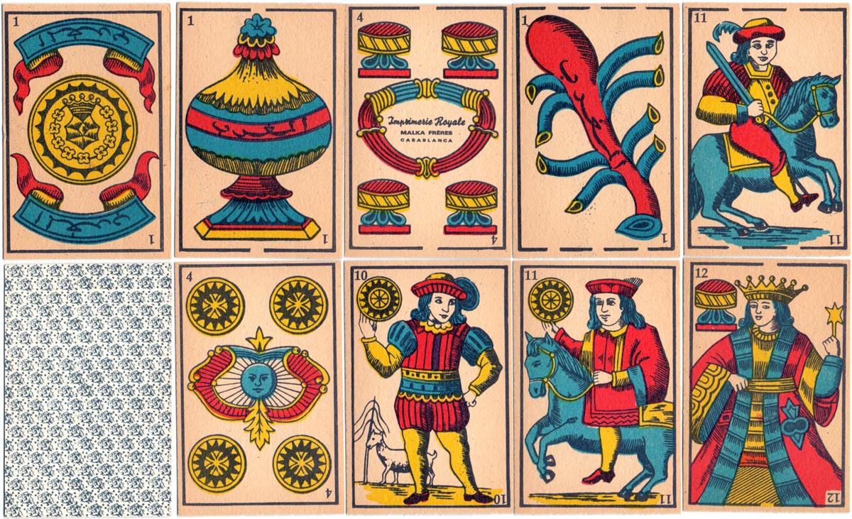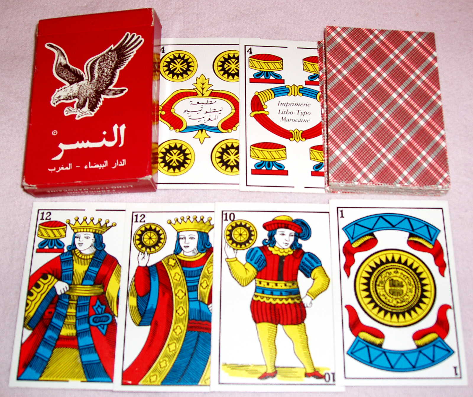 and other anonymous manufacturers or brands such as Cartes Lion, L'Elephant, L'Aigle or Sindibad. Morocco is now one of the last remaining countries to use the old Spanish National pattern.