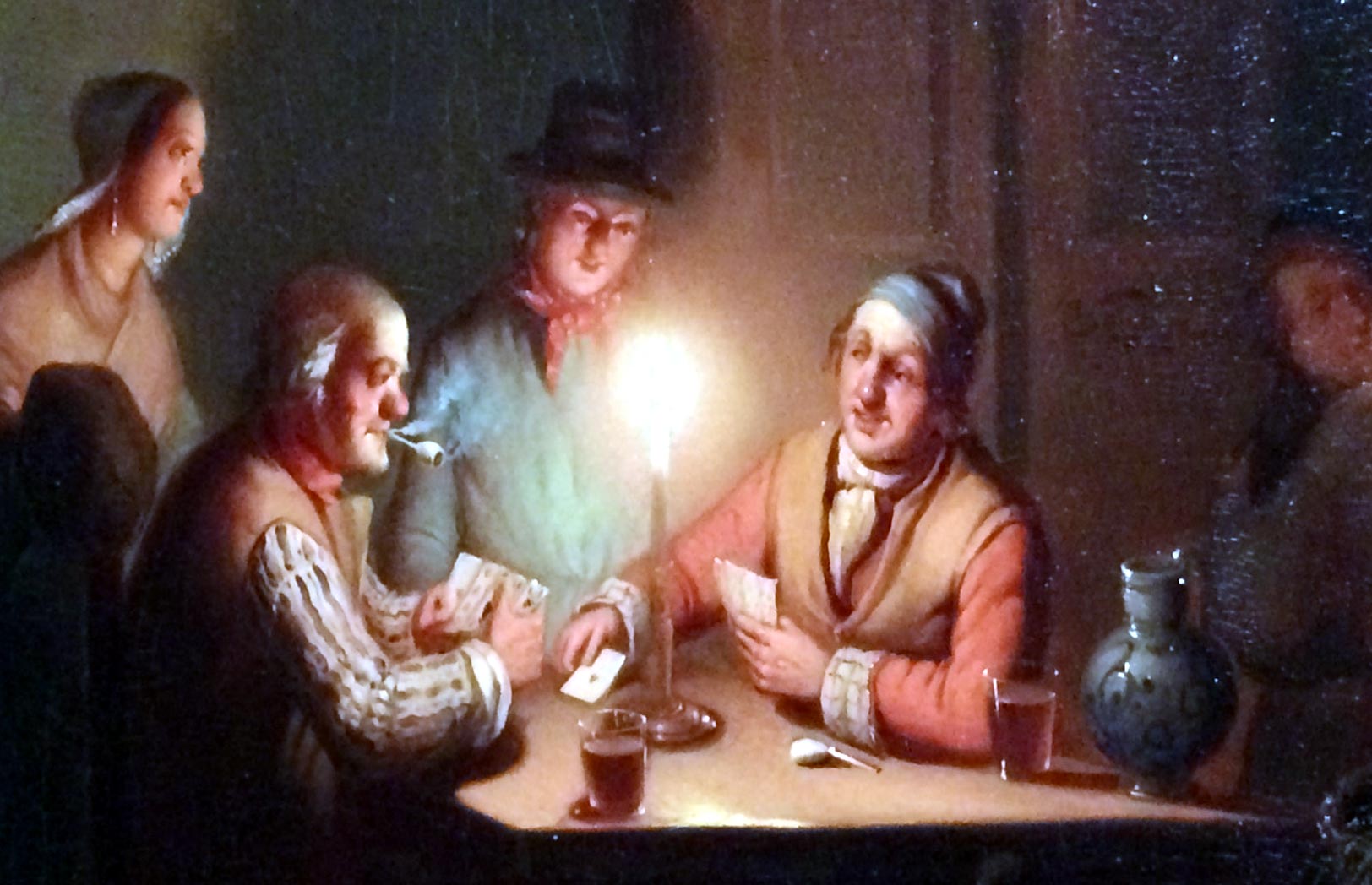 Card Players by Candlelight, Johan Mengels Culverhouse (c.1820-1891).