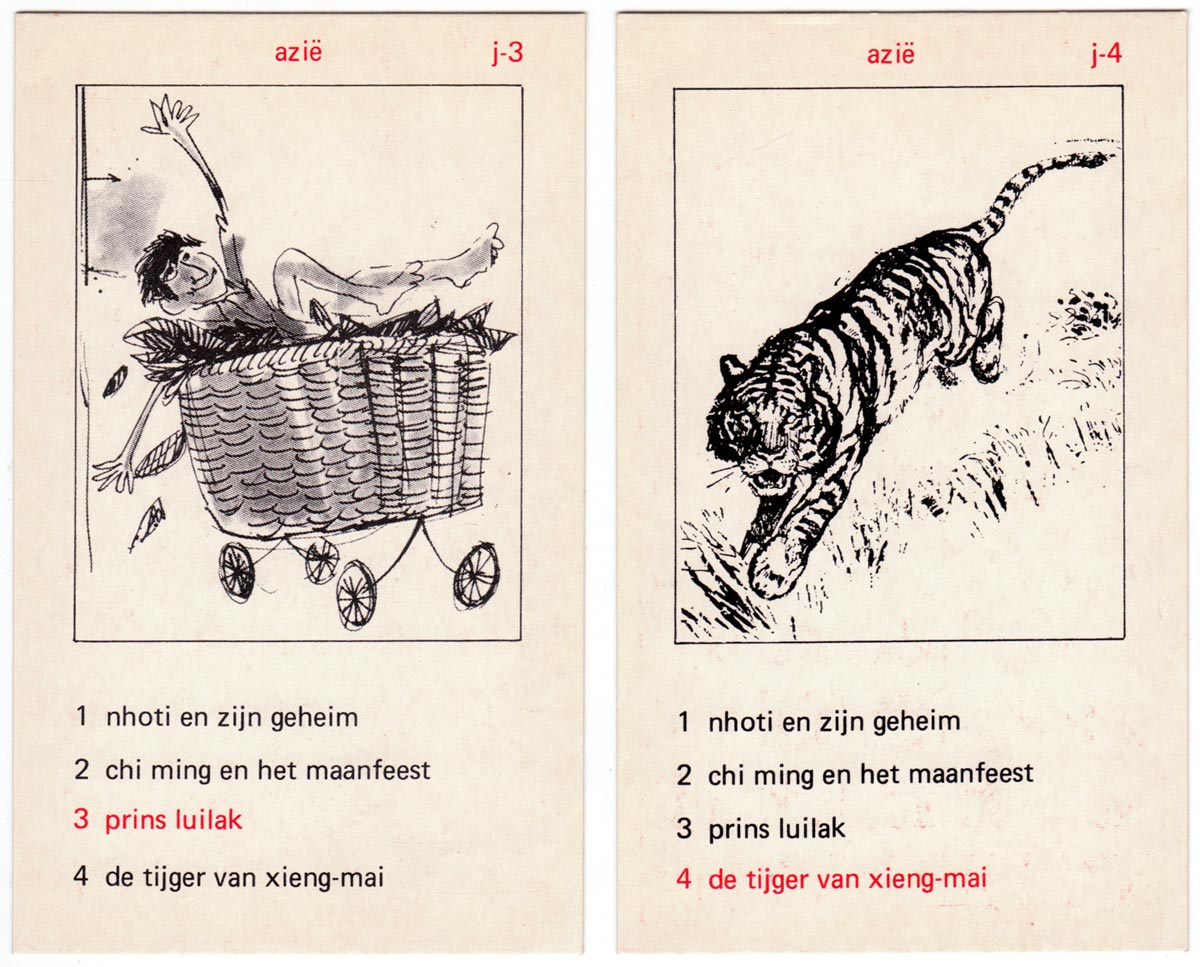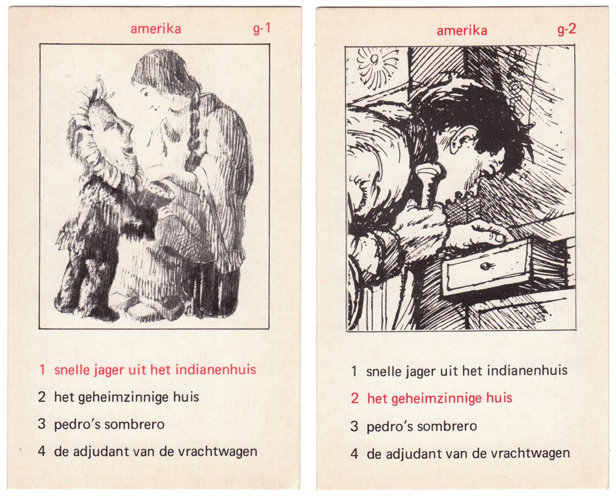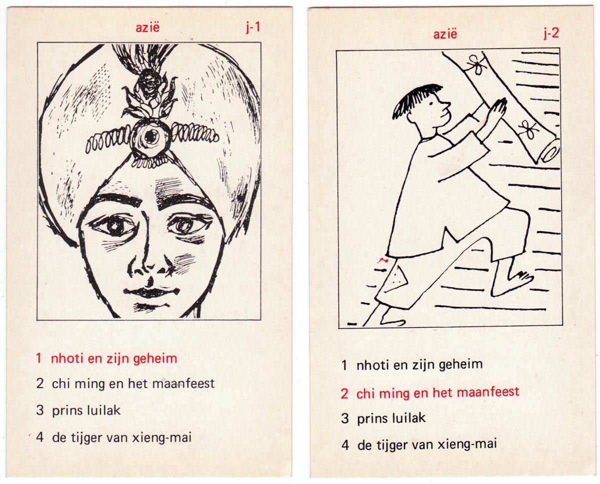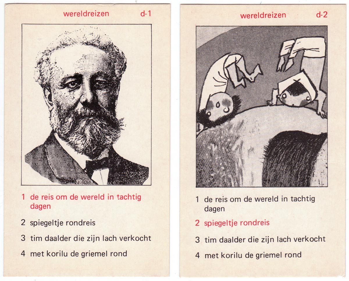 Above: the box and back design from Boekenkwartet, published by Bureau Boek en Jeugd (Book & Youth Bureau), The Hague, 1970s. 48 cards + rules in box. The names of the book illustrators are not credited.