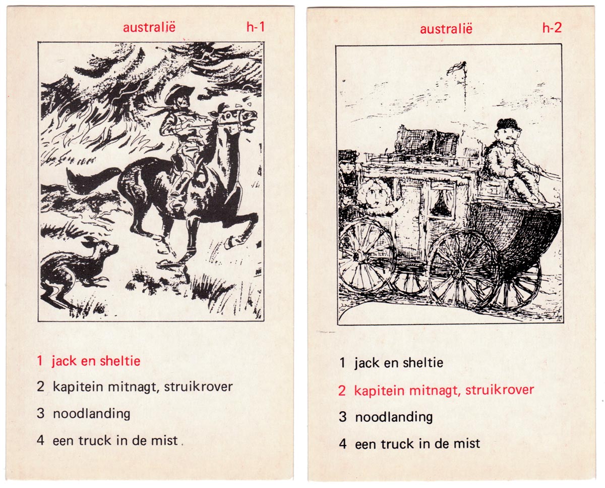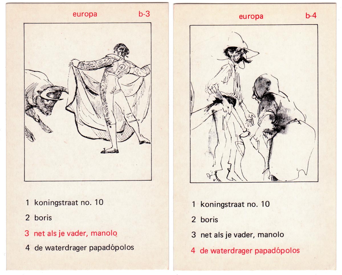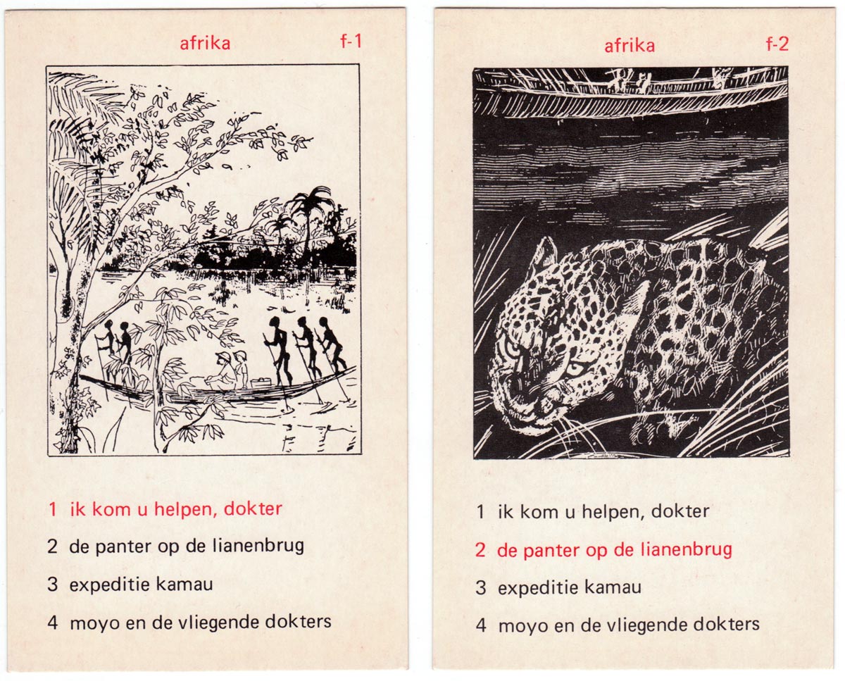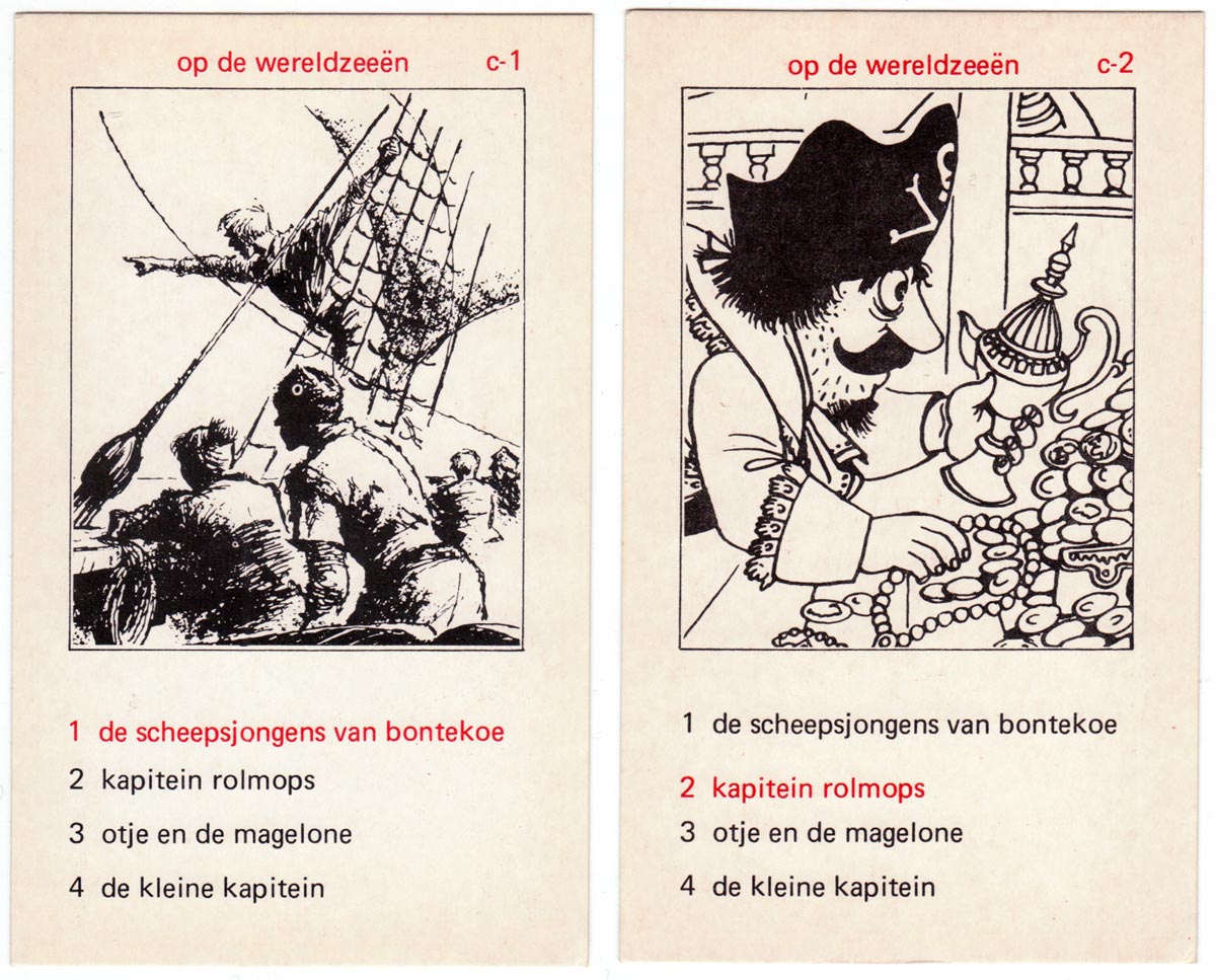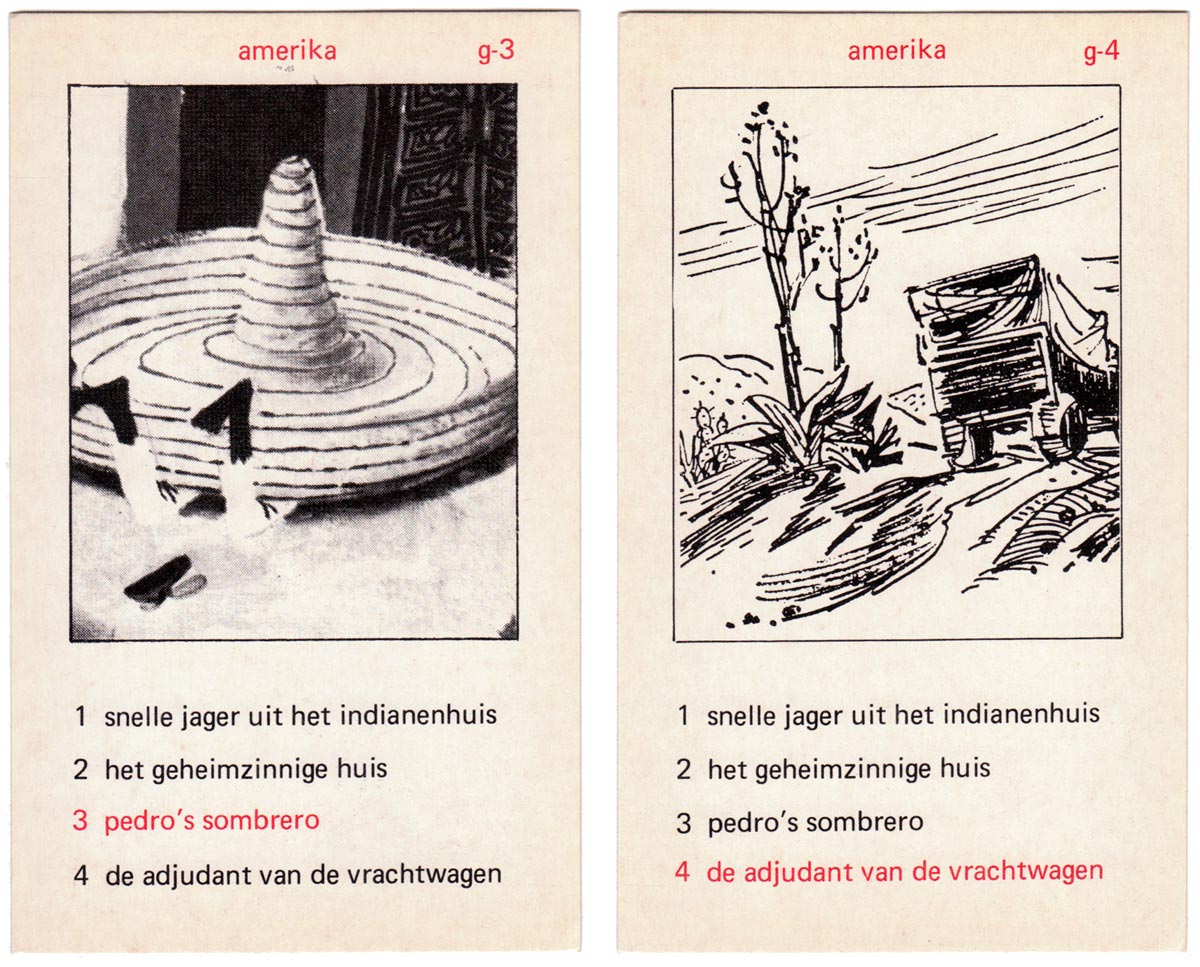 Above: the box and back design from Boekenkwartet, published by Bureau Boek en Jeugd (Book & Youth Bureau), The Hague, 1970s. 48 cards + rules in box. The names of the book illustrators are not credited.