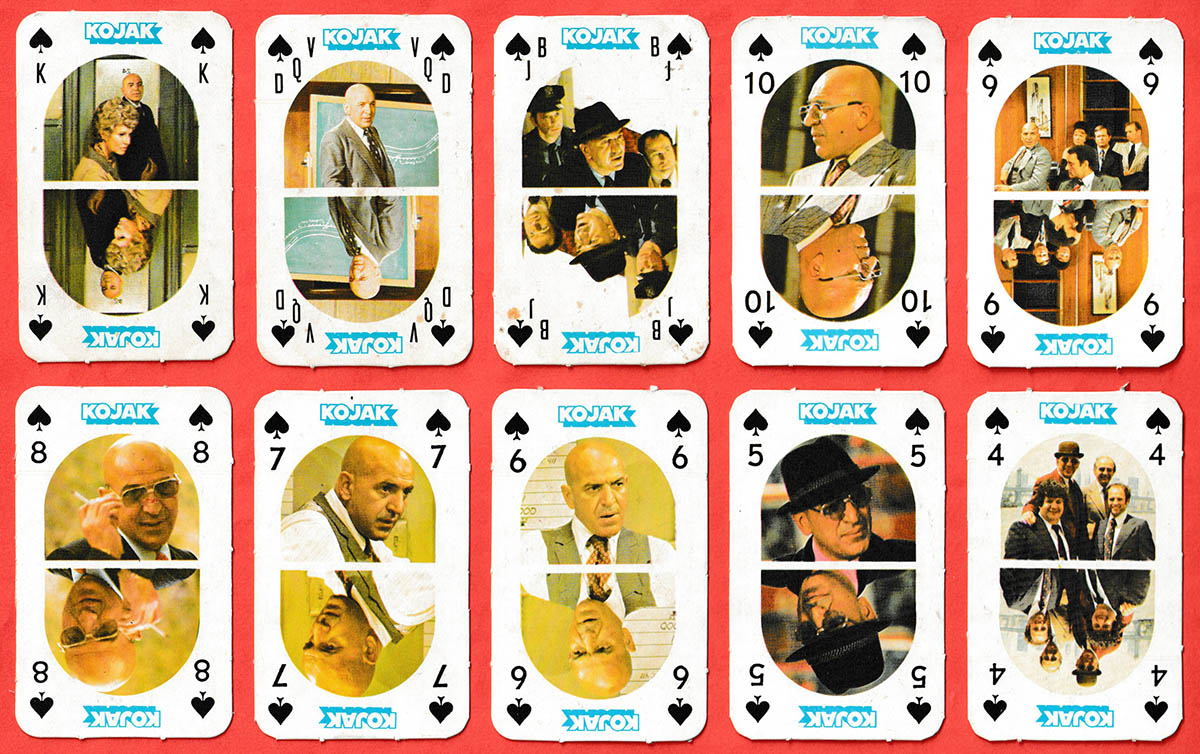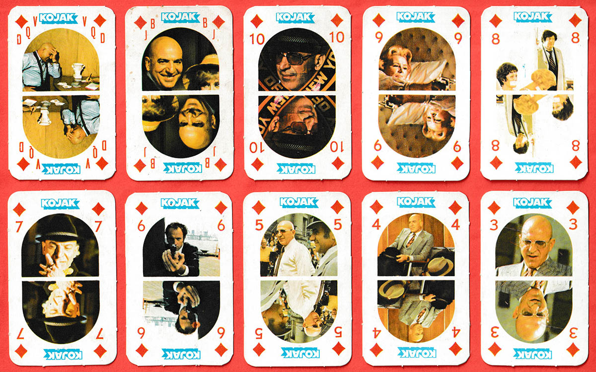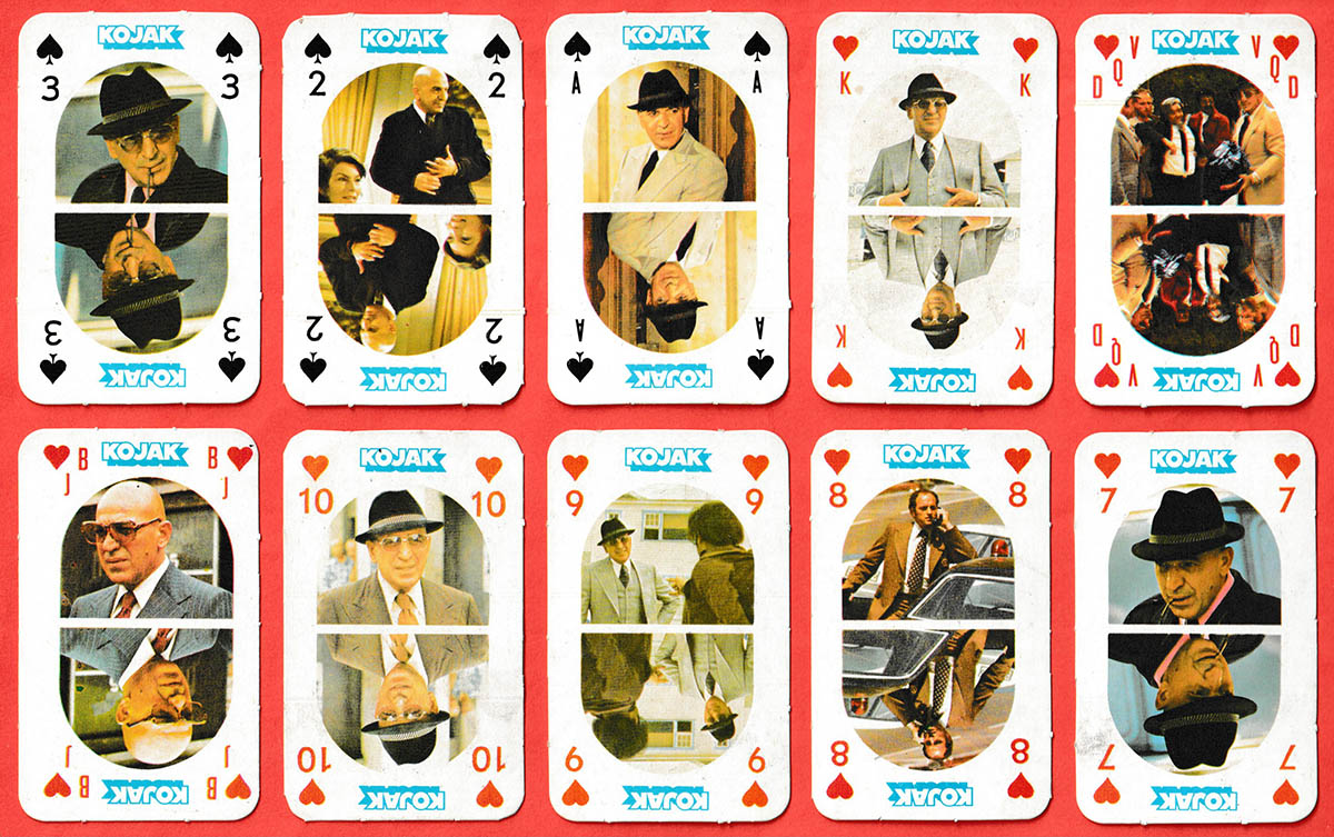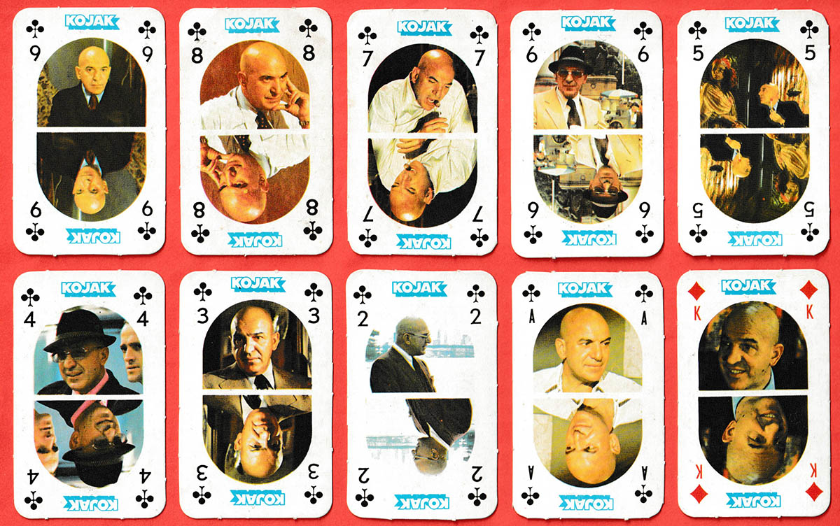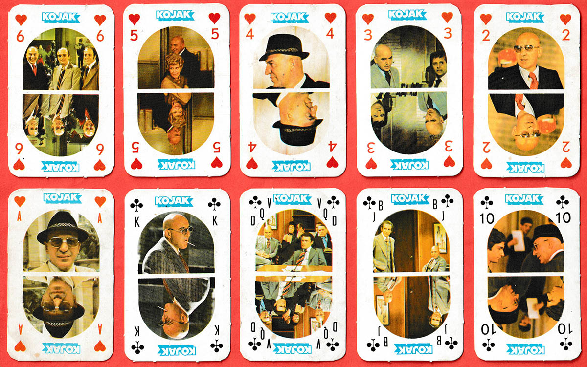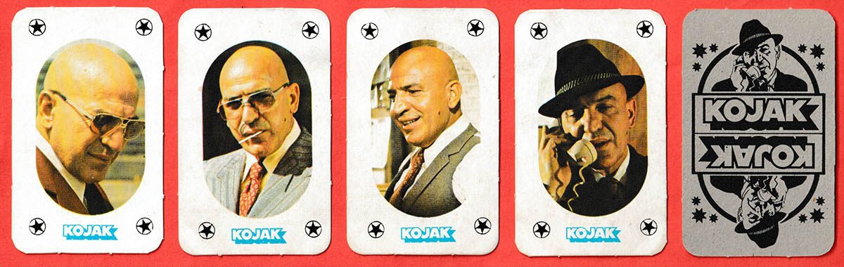 Above: Kojak bubble gum cards published by Monty Gum, Leiden, the Netherlands, 1978. 52 cards + 4 Jokers. Size: 48 x 78 mm.