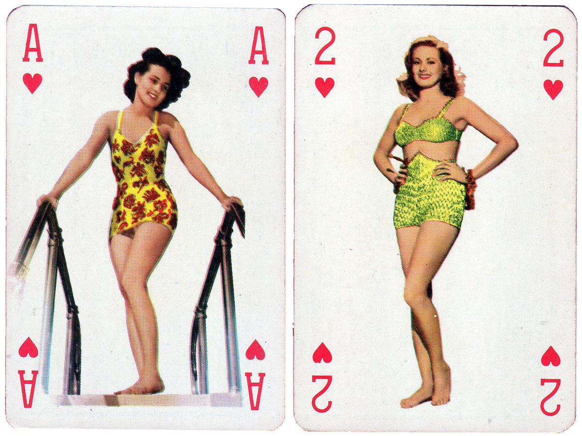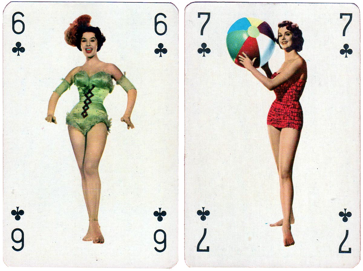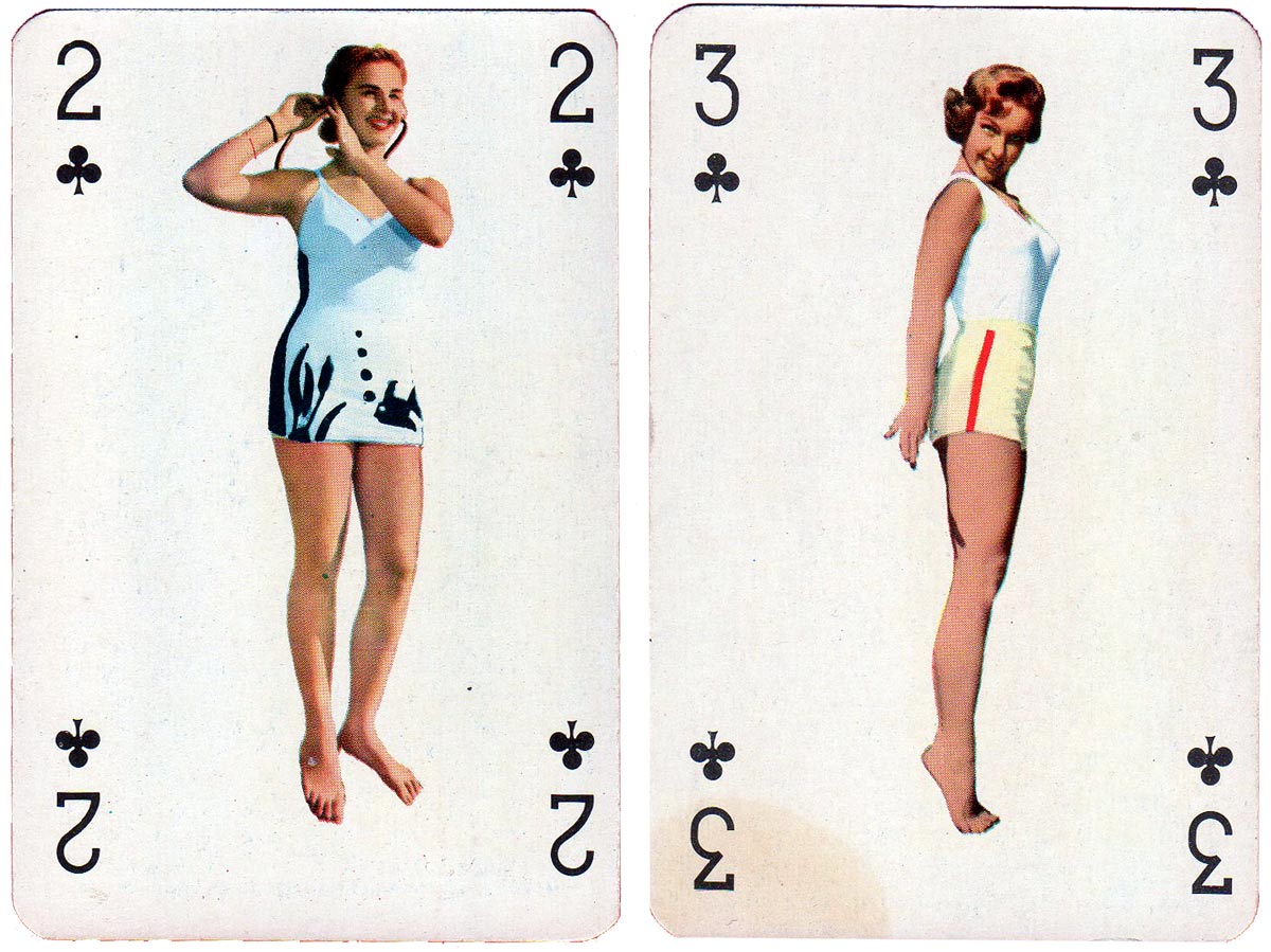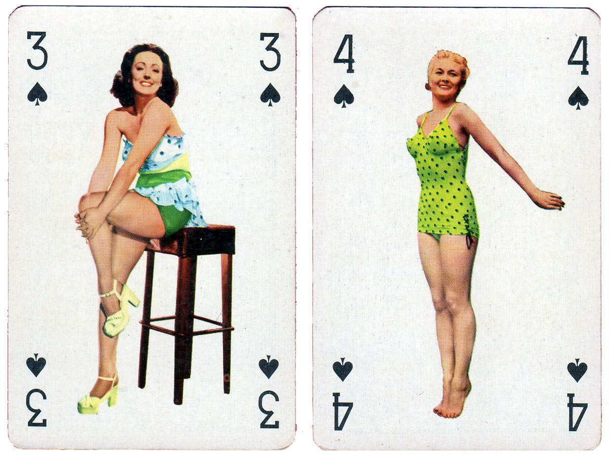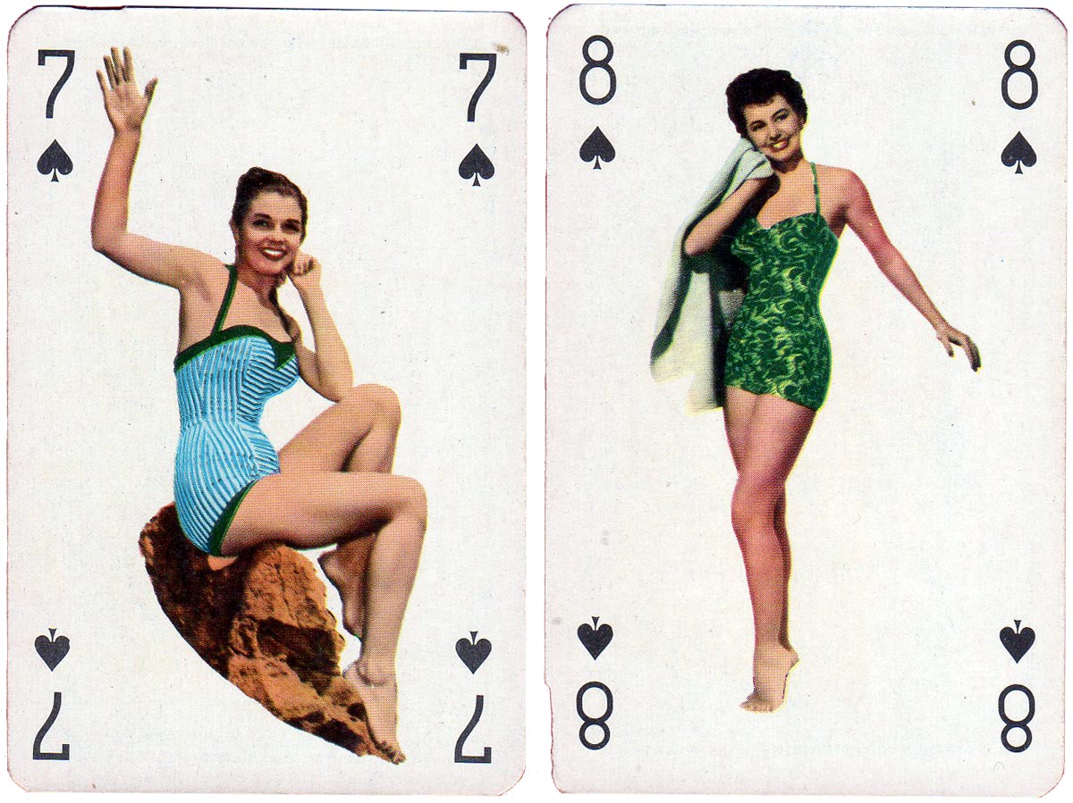 Spanish-suited playing cards featuring the ‘Glorious’ ladies swimwear collection for 1995, designed ...