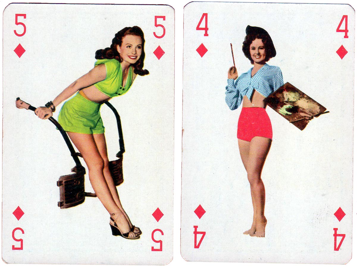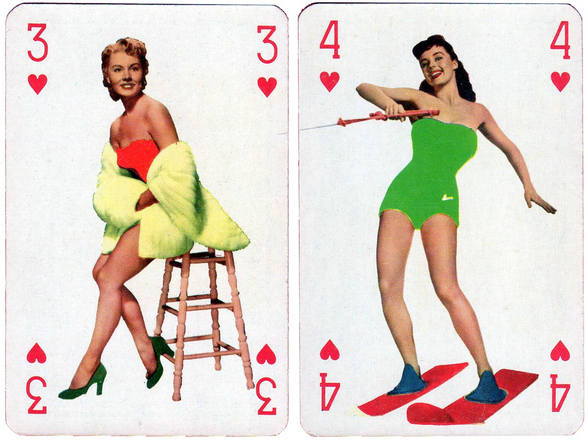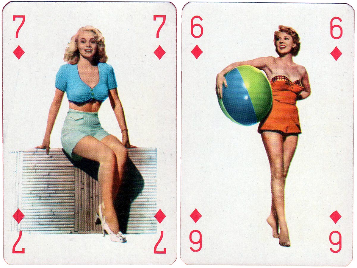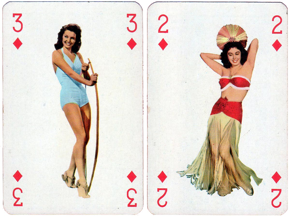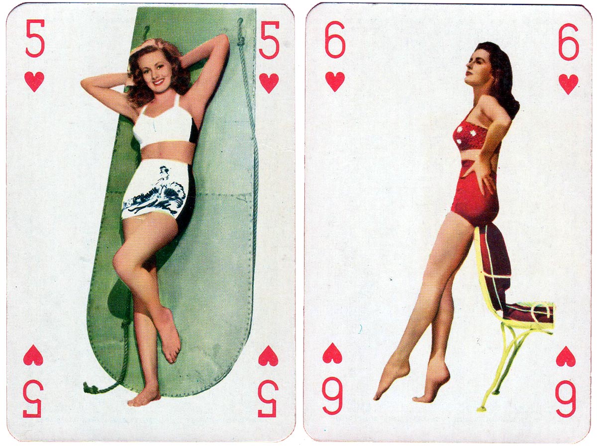 Spanish-suited playing cards featuring the ‘Glorious’ ladies swimwear collection for 1995, designed ...
