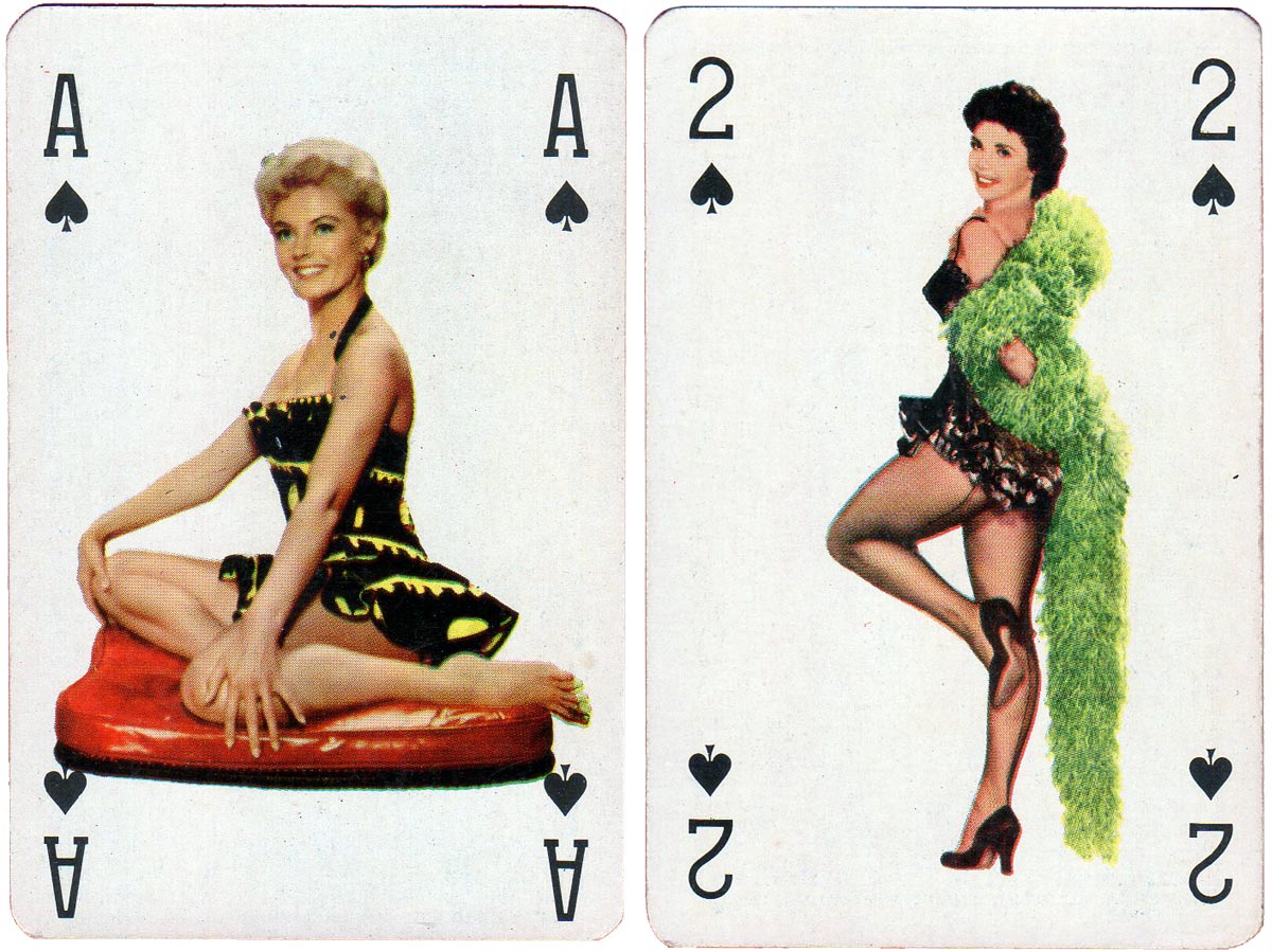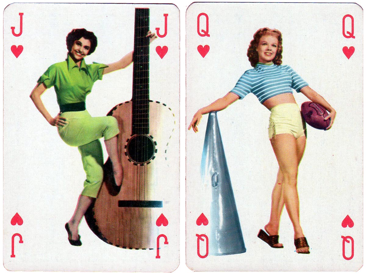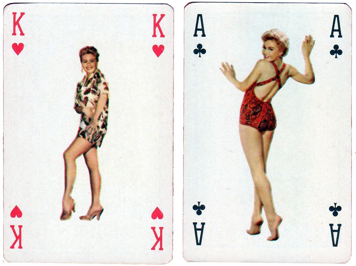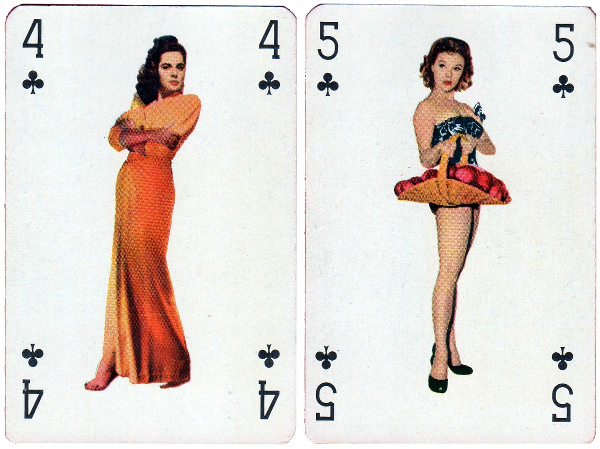 Above: ‘Hollywood Stars’ deck published by Maple Leaf Gum B.V., Amsterdam, and manufactured by Speelkaartenfabriek Nederland, 1957. Card size = 2¼ x 3½" which is slightly smaller than standard decks. They were probably sold as a full deck rather than singly inside packs of gum. A quantity of these decks was found in 1969 when the factory closed.