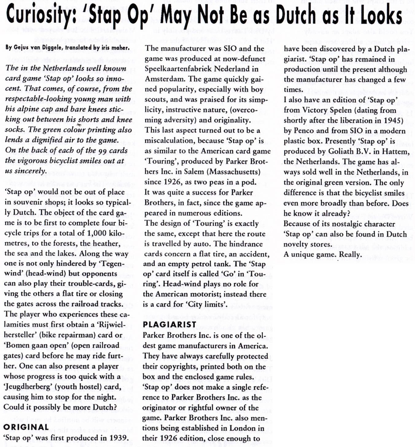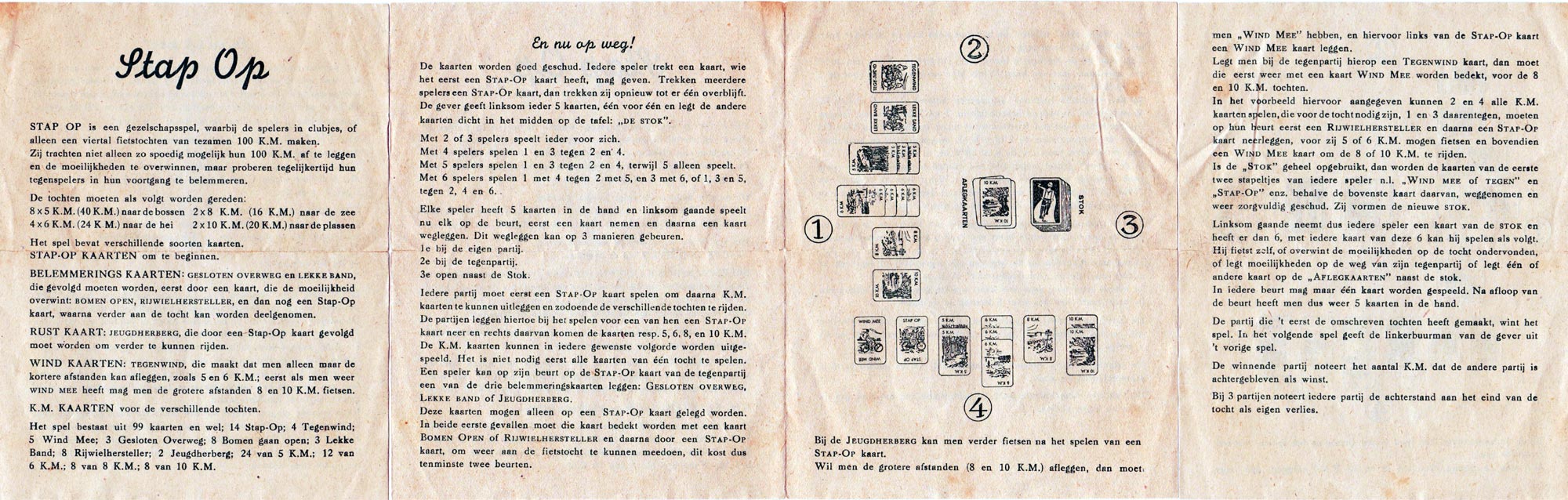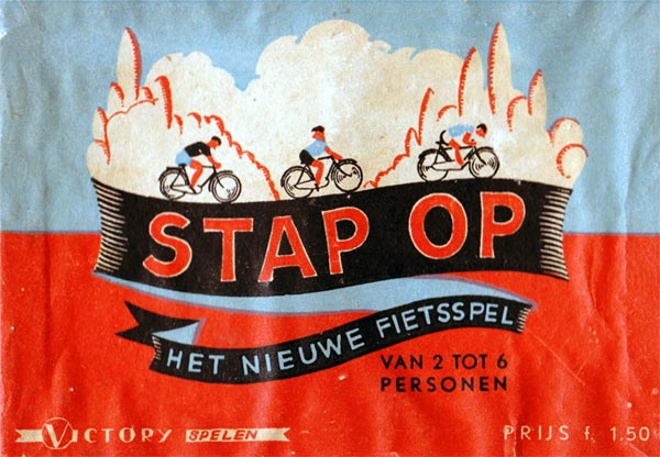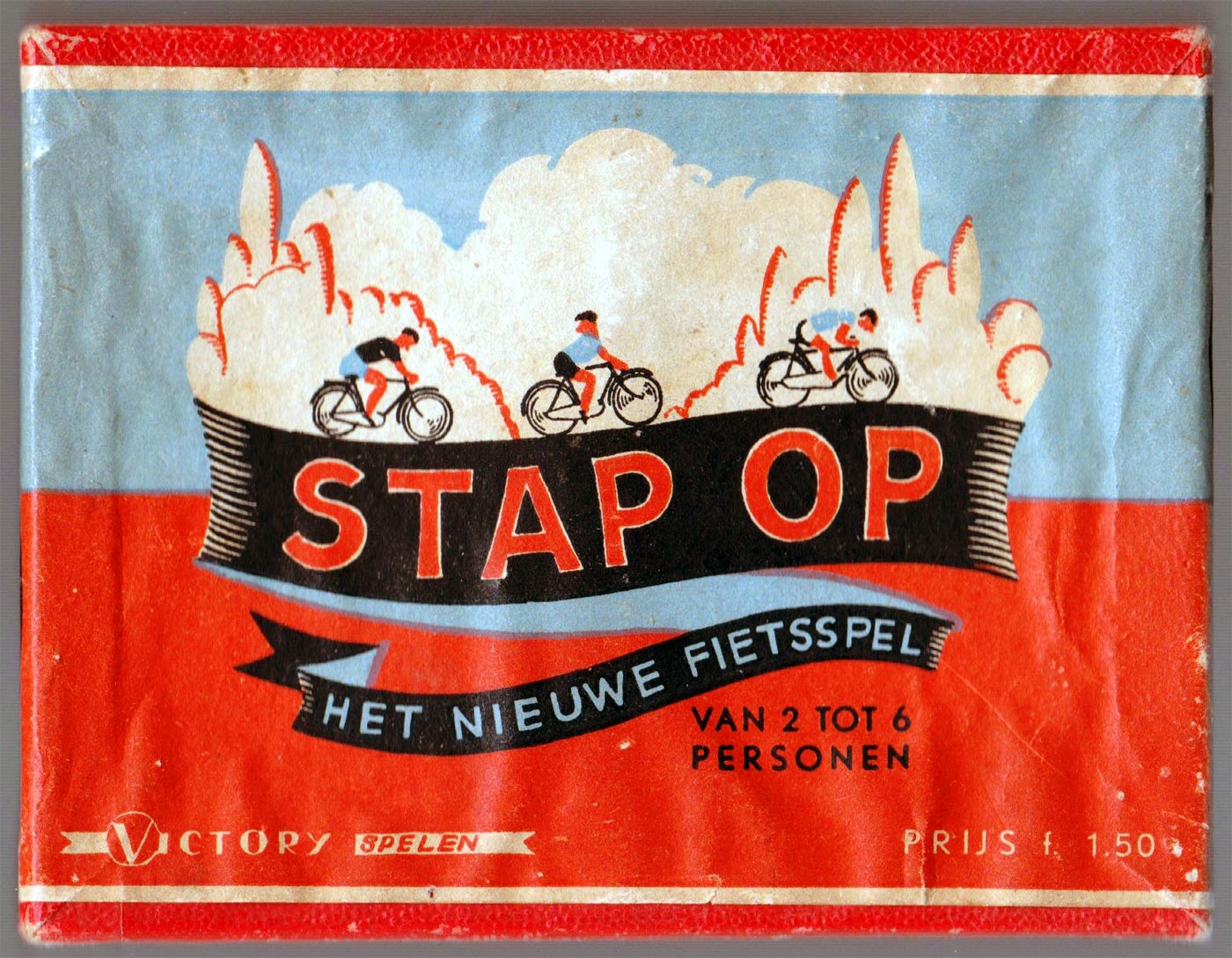 Stap Op (Step Up) by Penco for Victory Spelen 1945. A clone of Parker’s Touring except the Dutch have to do it all on a bicycle. The game was written about in the legendary “Het Spel” magazine which only lasted for 3 issues in 1993. Stap Op was reviewed by Gejus van Diggele in issue 2►