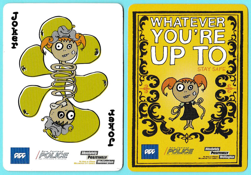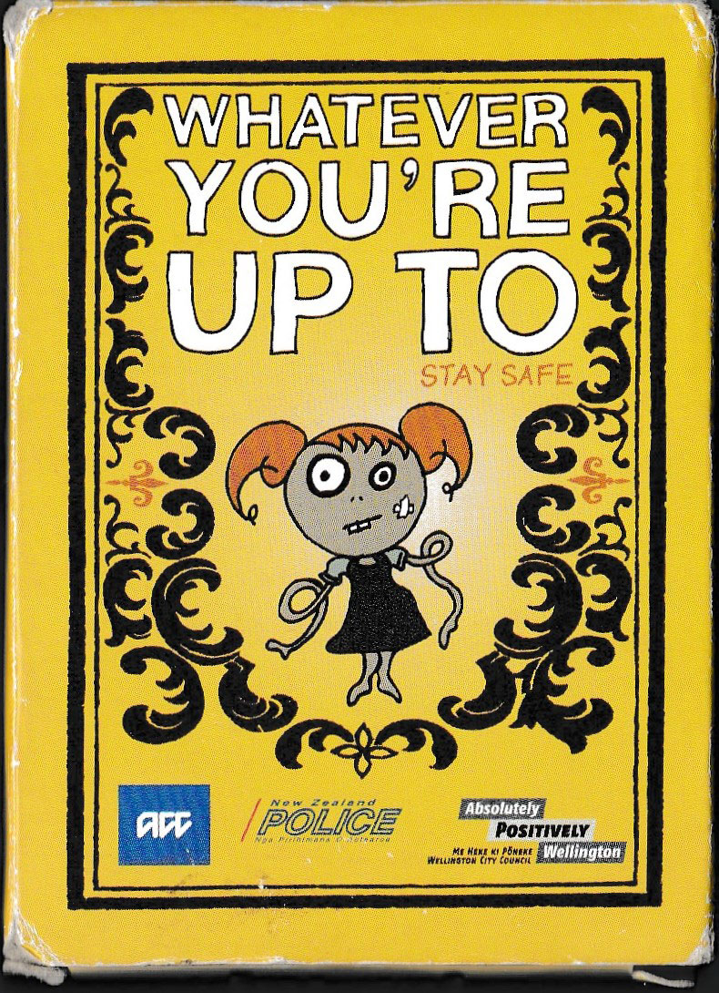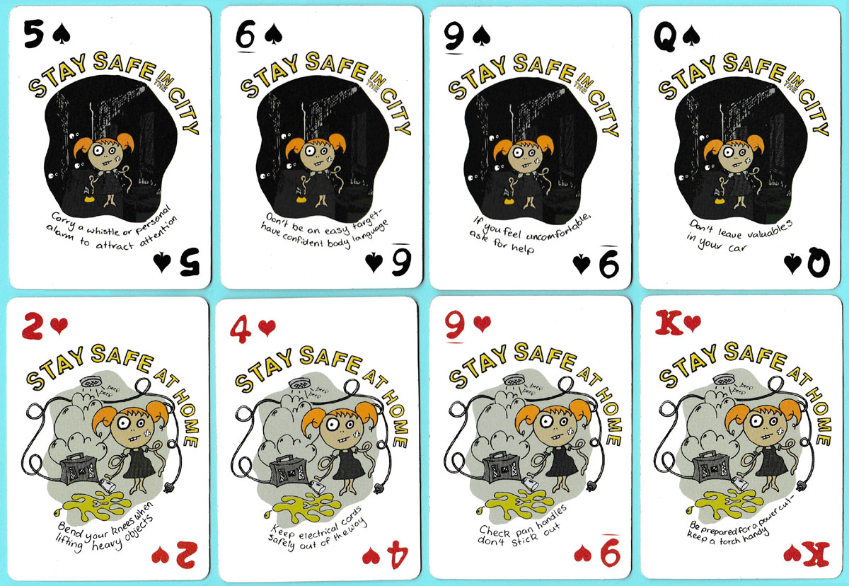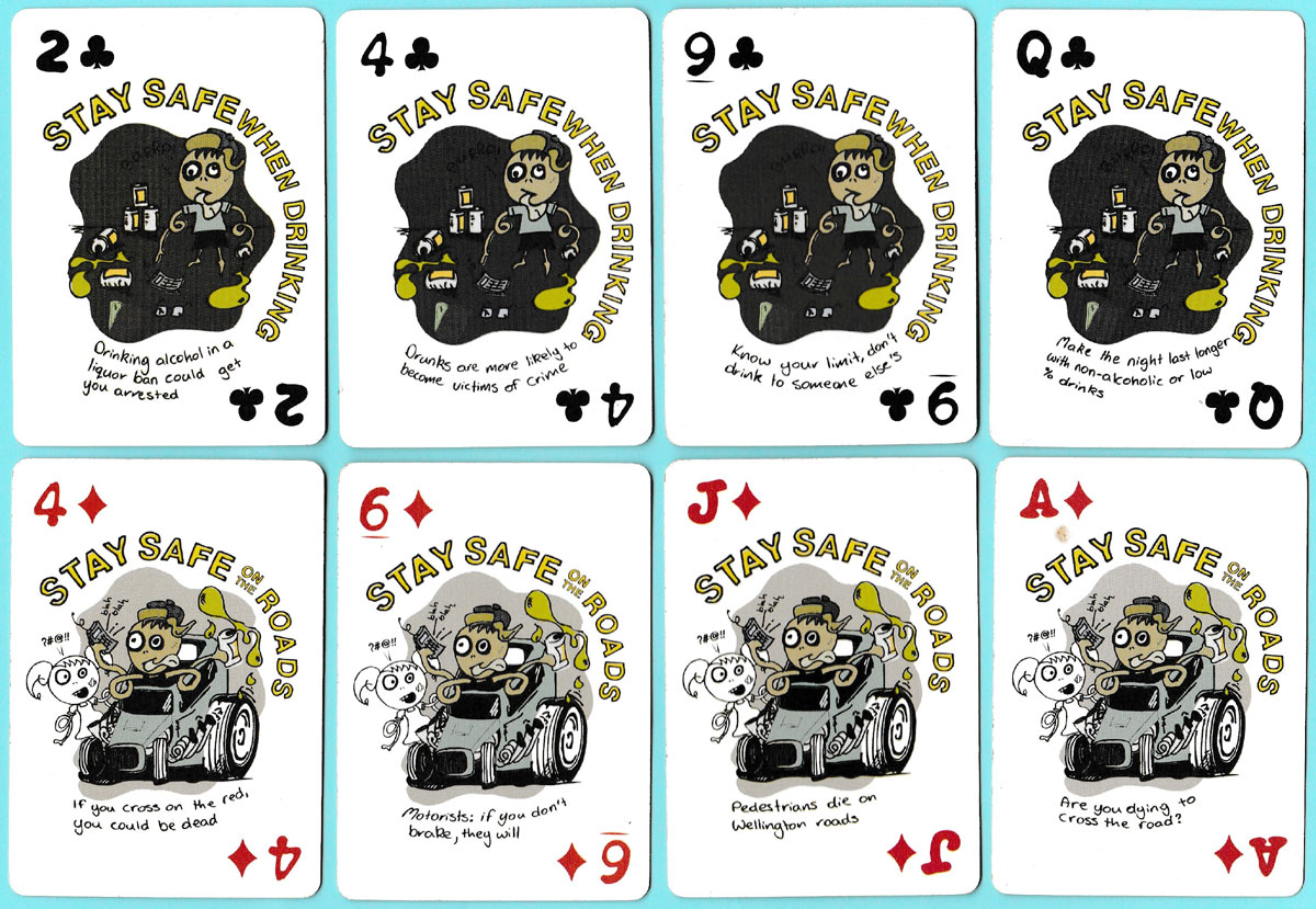 Above: “Whatever you’re up to, stay safe” educational playing cards produced by New Zealand Police and the Wellington City Council.