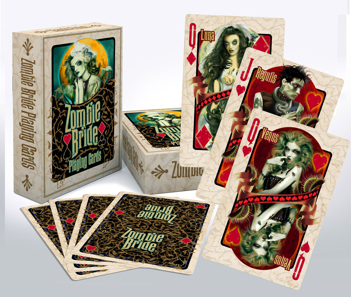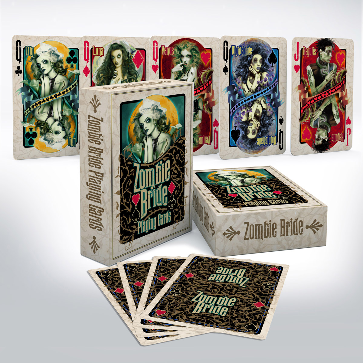 The deck also includes a new game called Zombie Bride, with similar rules compared to fast Gin Rummy. The rules and instructions of the game will be on a special 55th card.