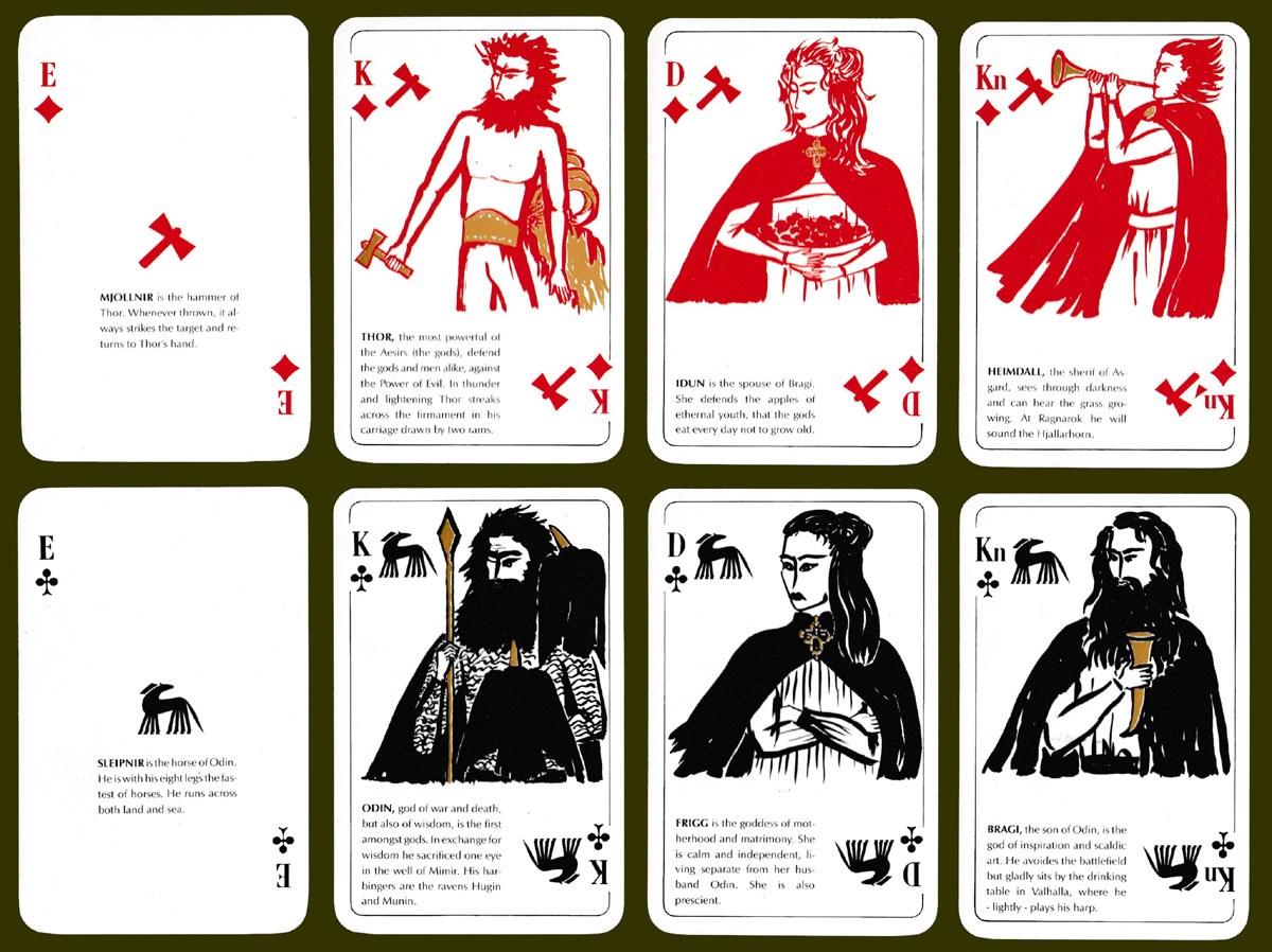 Iceland Mythological Playing Cards designed by Sigurlinna Pétursson, 1958
