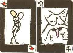 Left: Skat Erotique 1987. A limited edition of 100 packs, commercially printed in b&W and hand coloured afterwards. | ||