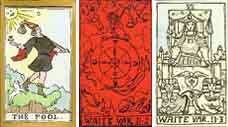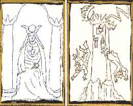 Left: Waite Variations I. This was the first in a series of variations on the Waite/Smith tarot deck (1989). The deck is entirely handmade in a limited, signed and numbered edition of 133. | ||