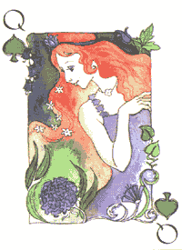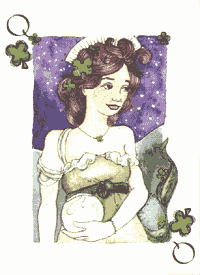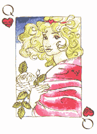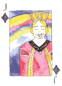 Their primary use is for the self-nurturing tips on the backs." Jean Zartner Author of "Self-Nurturing Solitaire" Editor of "The Upside of Being Single" newsletter Teacher Speaker Author Catalyst Idelle Jones is a designer who lives on the east coast in Ellicott City, Maryland. She was born in Beaufort, SC, and then moved to Colorado, where she lived for 22 years. She enjoys all areas of art, but her love is in printmaking. For the day job Idelle works as a Graphic Designer, which caters to her creative side. While working at the same company as Jean Zartner, the two were introduced, and Jean told Idelle about her ideas for a deck of cards. They worked together brainstorming ideas on the concept of the deck. Idelle illustrated the cards in an Art Noveau style, because of it's decorative and beautiful characteristics. Though Idelle has done various illustrations, this was one of the largest projects she has worked on, and the most creative. Jean was very open minded, and had great ideas about the symbols and colors of the deck. Each suit has it's own unique qualities, and the faces of the cards reflect the ideas around the symbols : the clover represents luck, the heart for self-love, the spade for growth, and the diamond for light. As a result of a great team, Jean and Idelle produced a unique and and useful deck of cards for those who need a little "Self Nurturing". Each card has a positive idea printed on the back, designed to help you improve your inner life and become a better person. Idelle's water-colour paintings are bright and youthful, sometimes dreamy, adding a mystical and self-nurturing feel to the pack. The club suit-sign is a four-leafed clover, and the heart symbol is a self-hugging heart. The indices are in a typeface reminiscent of hand lettering which works very well. Overall, nice cards! Very gentle and perfectly balanced - ideal for their purpose. |